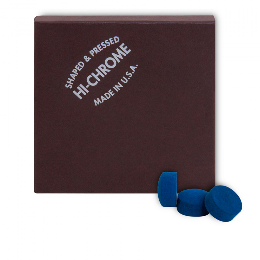 При спрессовывании заготовок кожи и штамповке из них наклеек Hi-Hrome используют синюю меловую крошку. Это позволяет дополнительно снизить риск «кикса» при ударах. Наклейки Hi-Chrome отлично удерживают мел и гарантируют виртуозное исполнение ударов с «винтами».