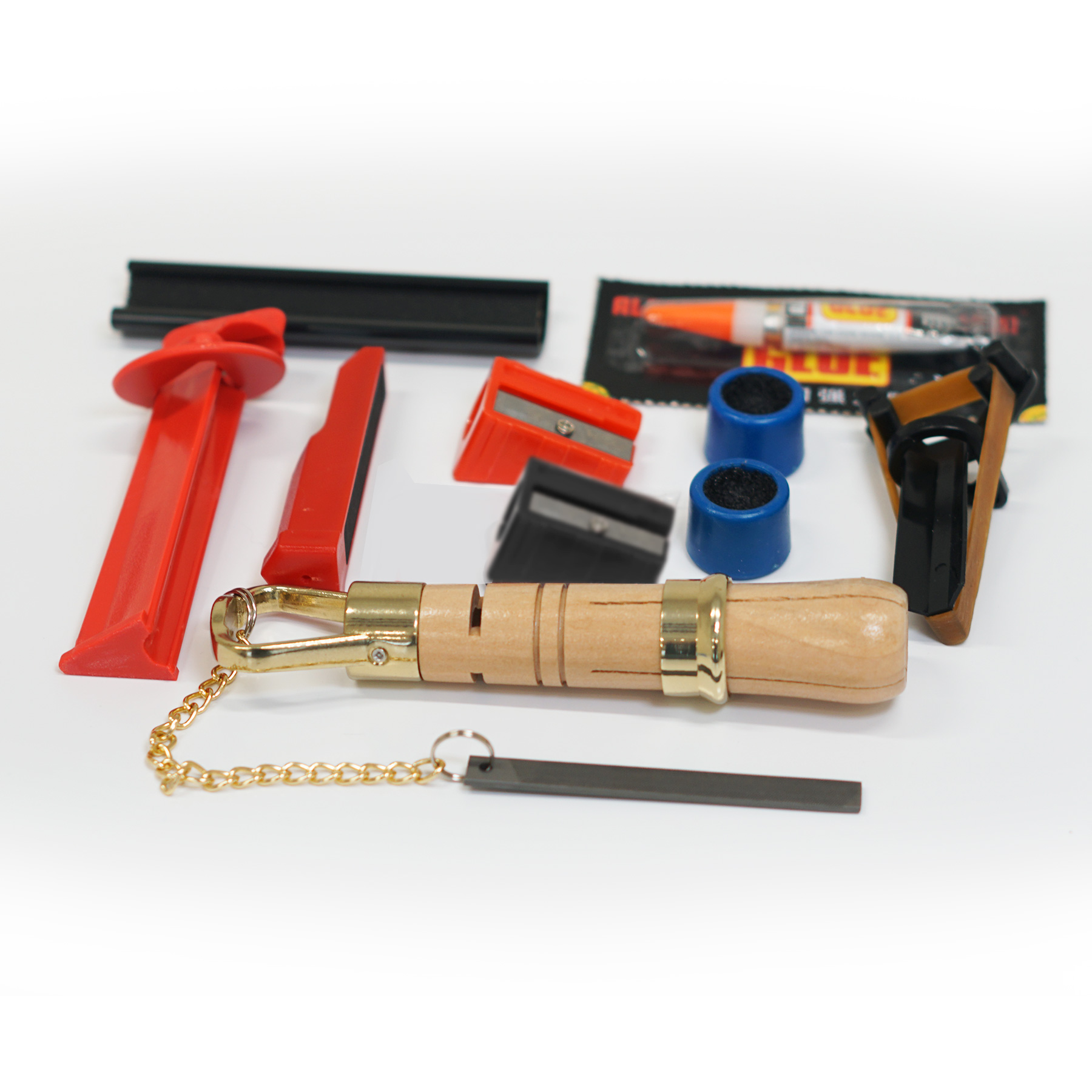 В данном наборе инструментов вы найдете все необходимое для установки наклейки на кий и поддержании ее в хорошем состоянии.