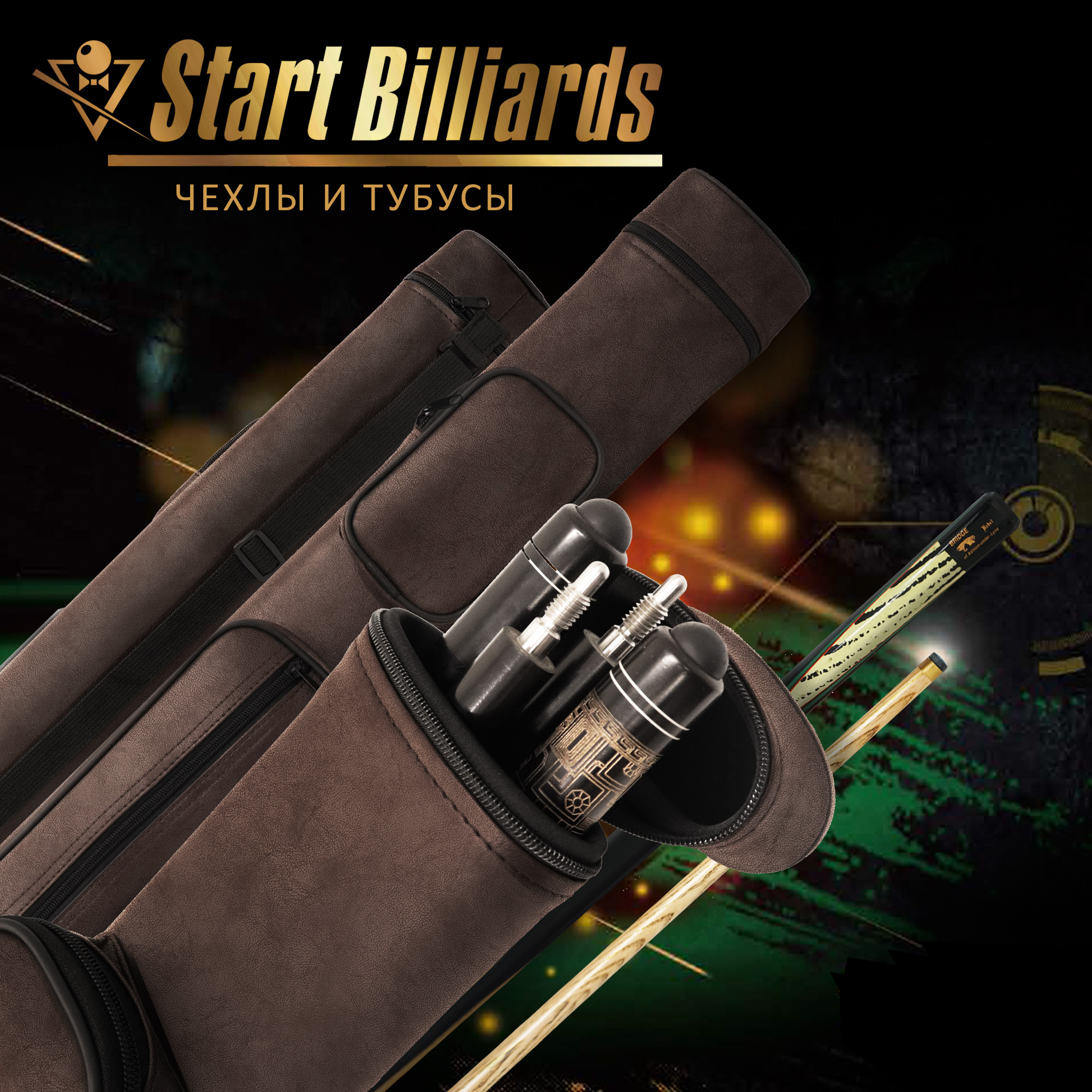 Внутреннее пространство организовано с помощью трех мягких перегородок, образующих четыре отдельные ячейки. Это позволяет безопасно транспортировать два двусоставных кия, полностью исключая контакт составных частей между собой.