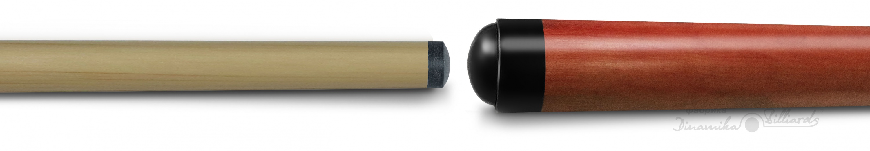 В двусоставных киях установлены специальные замки из прочного полимерного материала – собственная разработка Фабрики. Соединяя турняк и шафт, эта деталь обеспечивает идеальную скрутку, а также участвует в процессе замедления энергии, гася колебания, идущие в тыльную часть турняка, где уже находится груз. Использование цельного лепестка без склейки в построении кия обеспечивает стабильность, прочность, устойчивость изделия к искривлению.