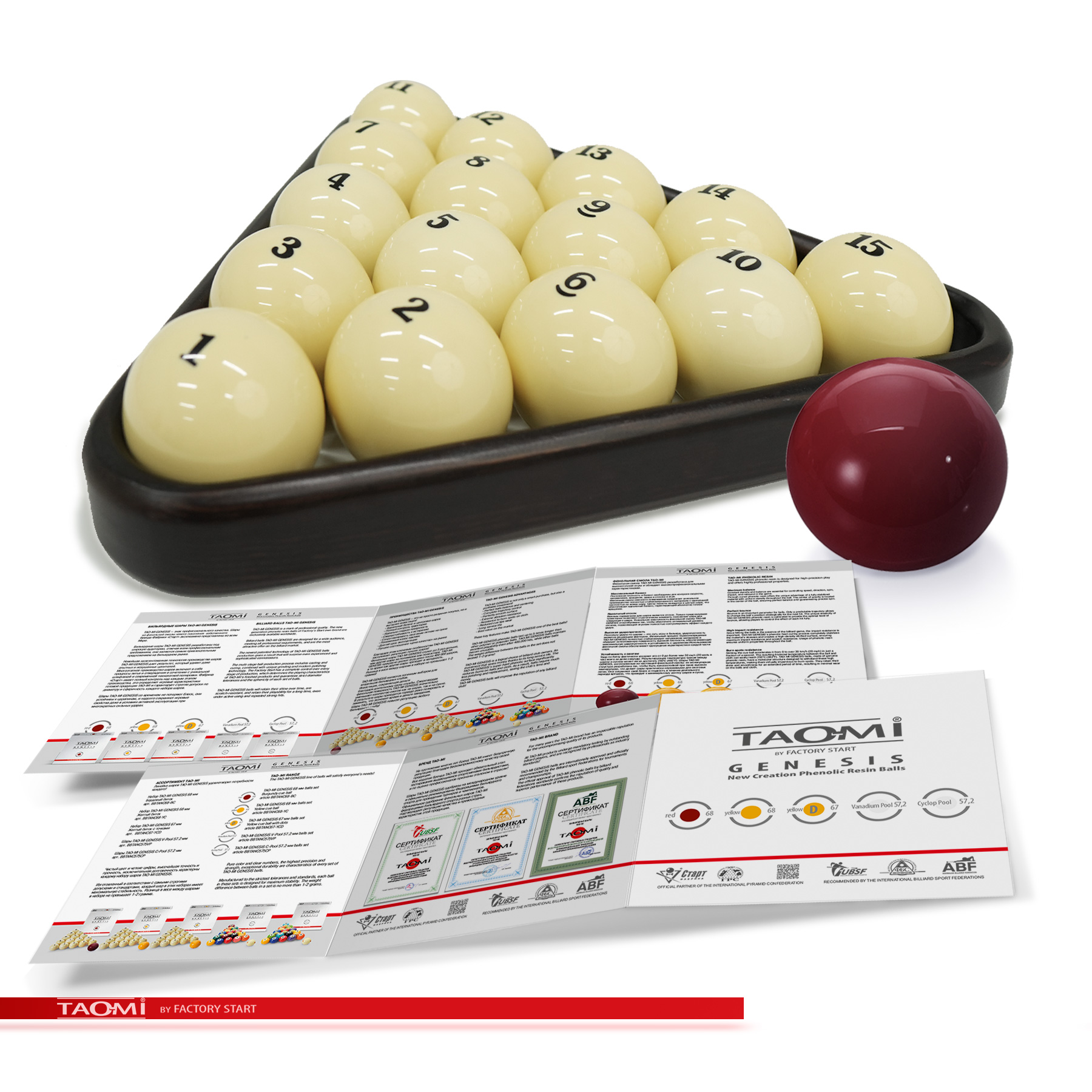 Шары TAO-MI GENESIS 68 мм – эталон точности и долговечности для игры в русскую пирамиду. Продукт нового поколения собственного бренда Фабрики «Старт», изготовленный по запатентованной технологии.