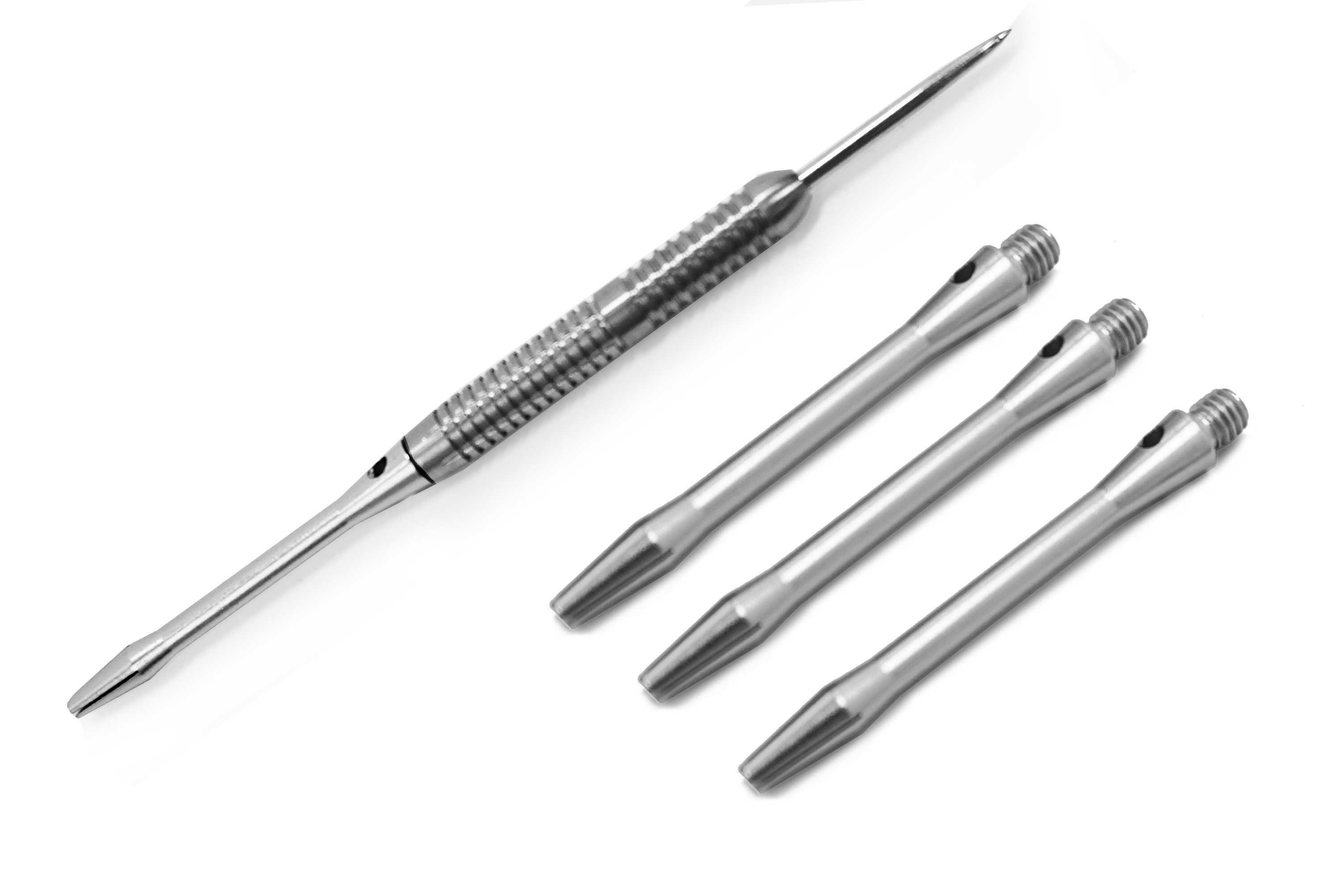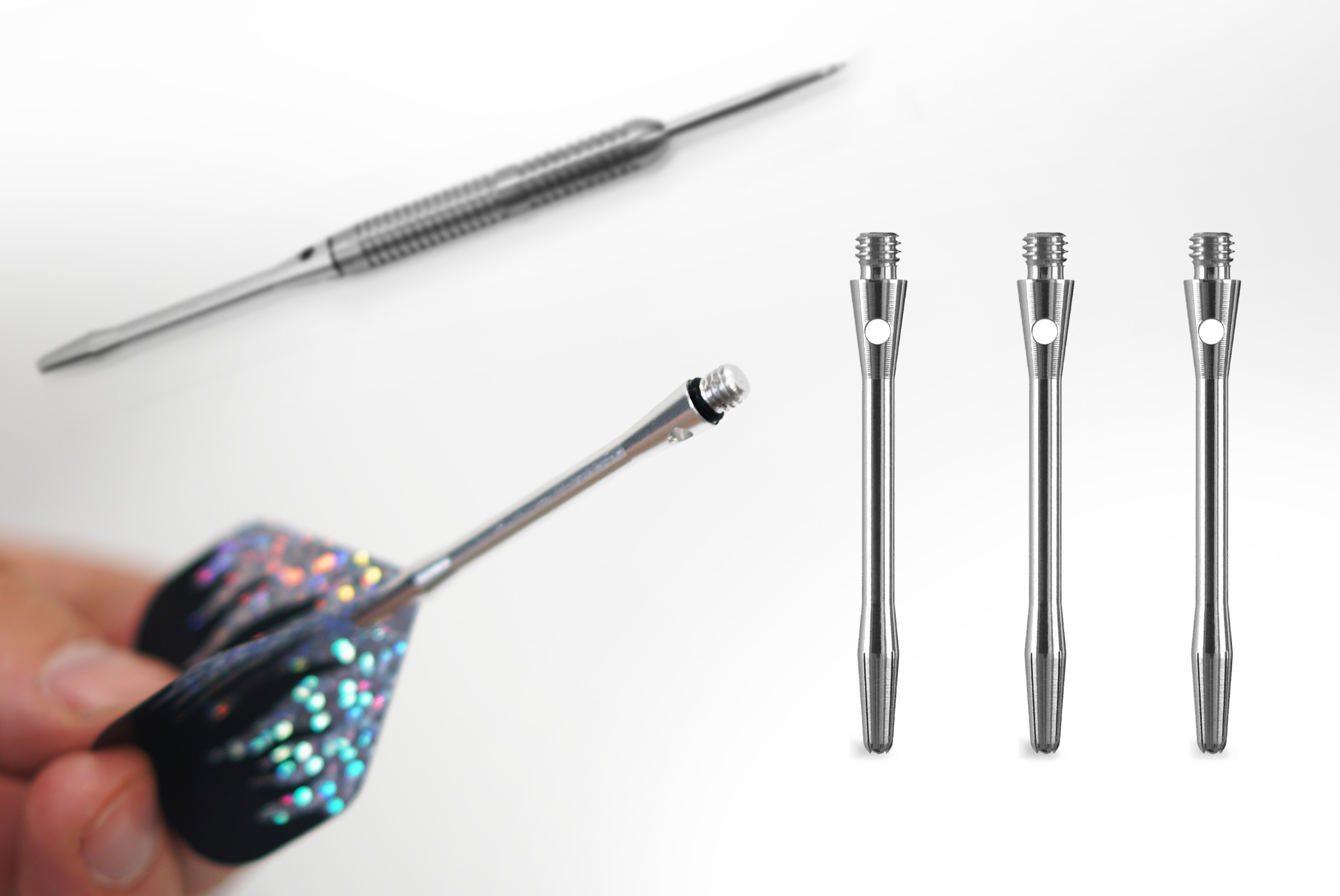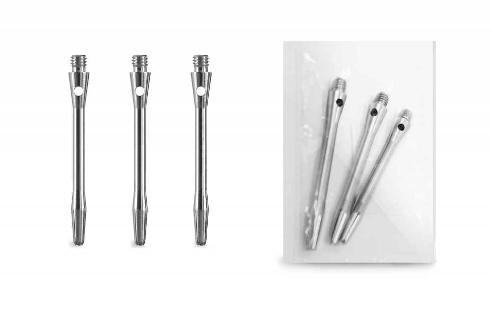 Набор алюминиевых хвостовиков подходит для среднего уровня игры. Комплект включает в себя три хвостовика, изготовленных из алюминия серебристого цвета. Хвостовики из алюминия очень надежны и не ломаются при столкновении дротиков. Каждый хвостовик универсален, имеет стандартную резьбу и длину 48 мм.