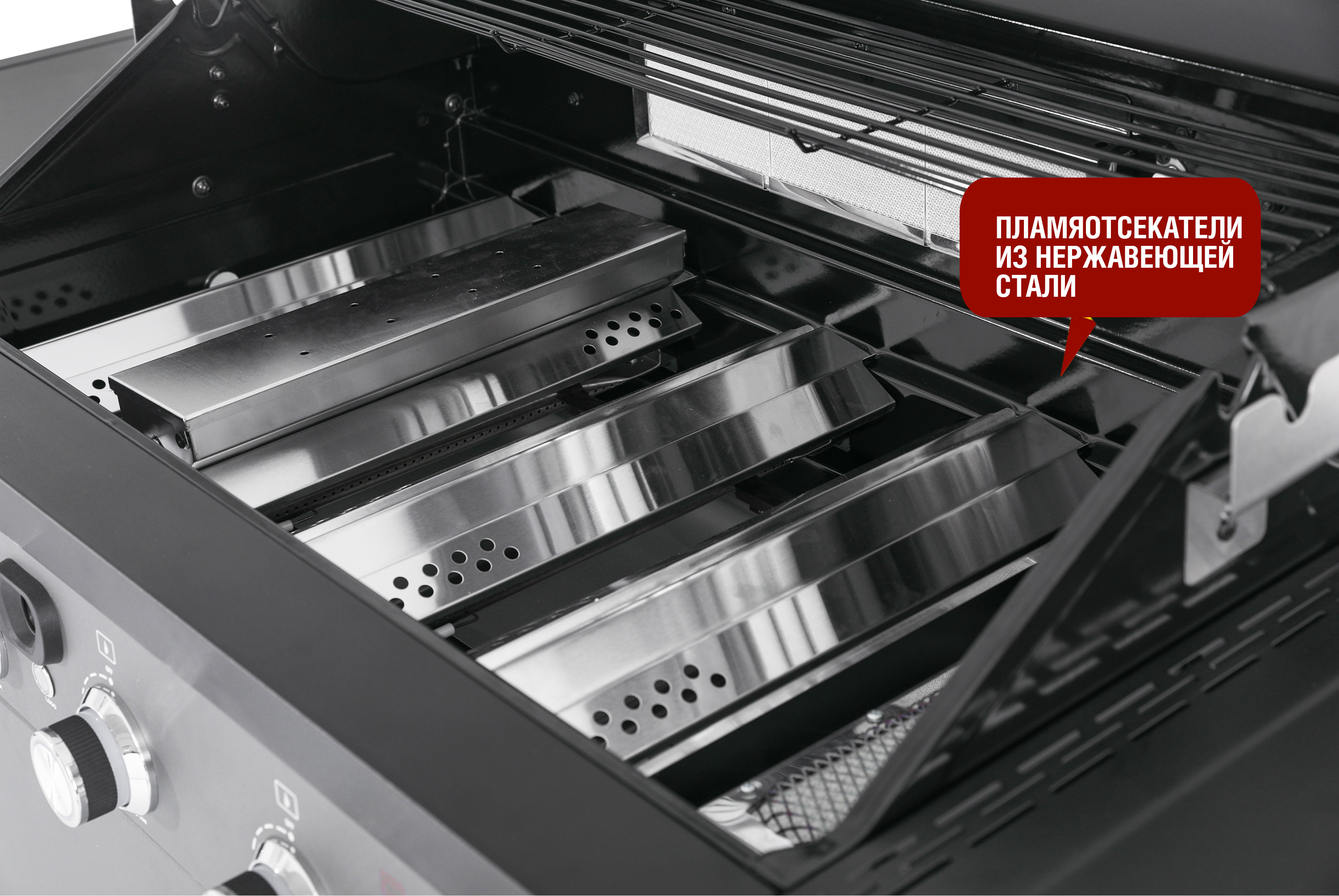 s-Heat (умный нагрев) — система терморегулирования, оптимального распределения и циркуляции высвобождаемого тепла в камере приготовления газового гриля в процессе готовки ваших блюд.