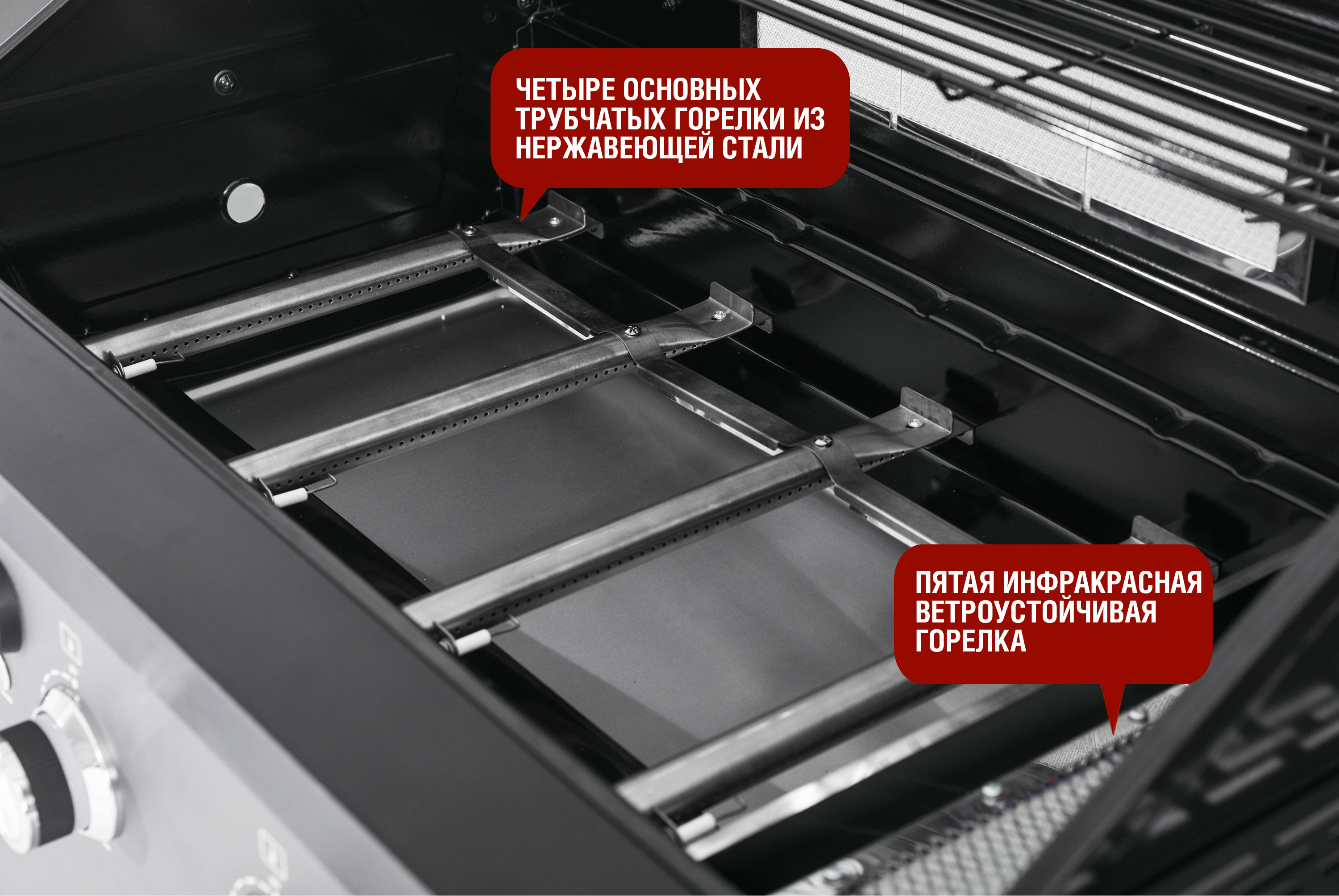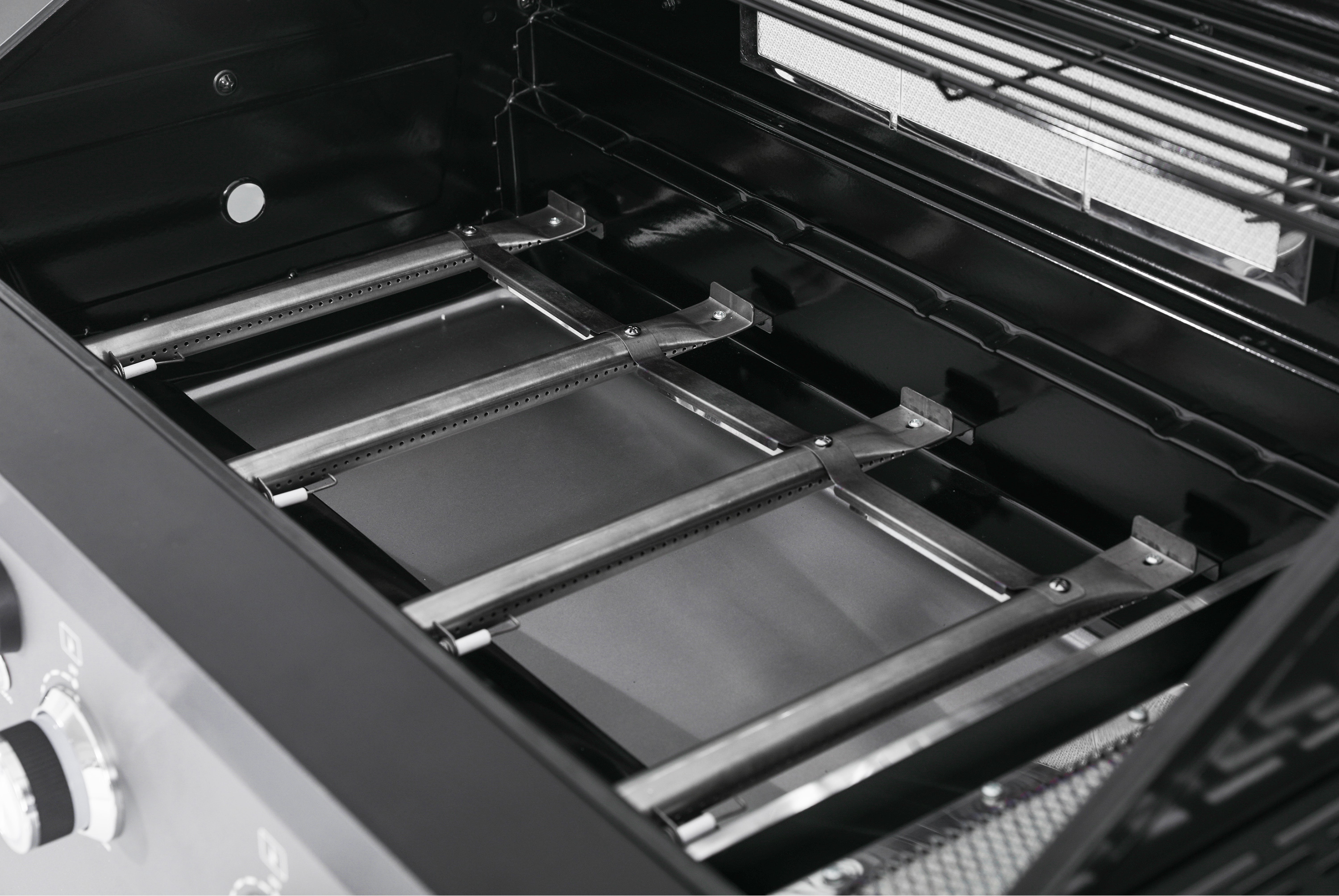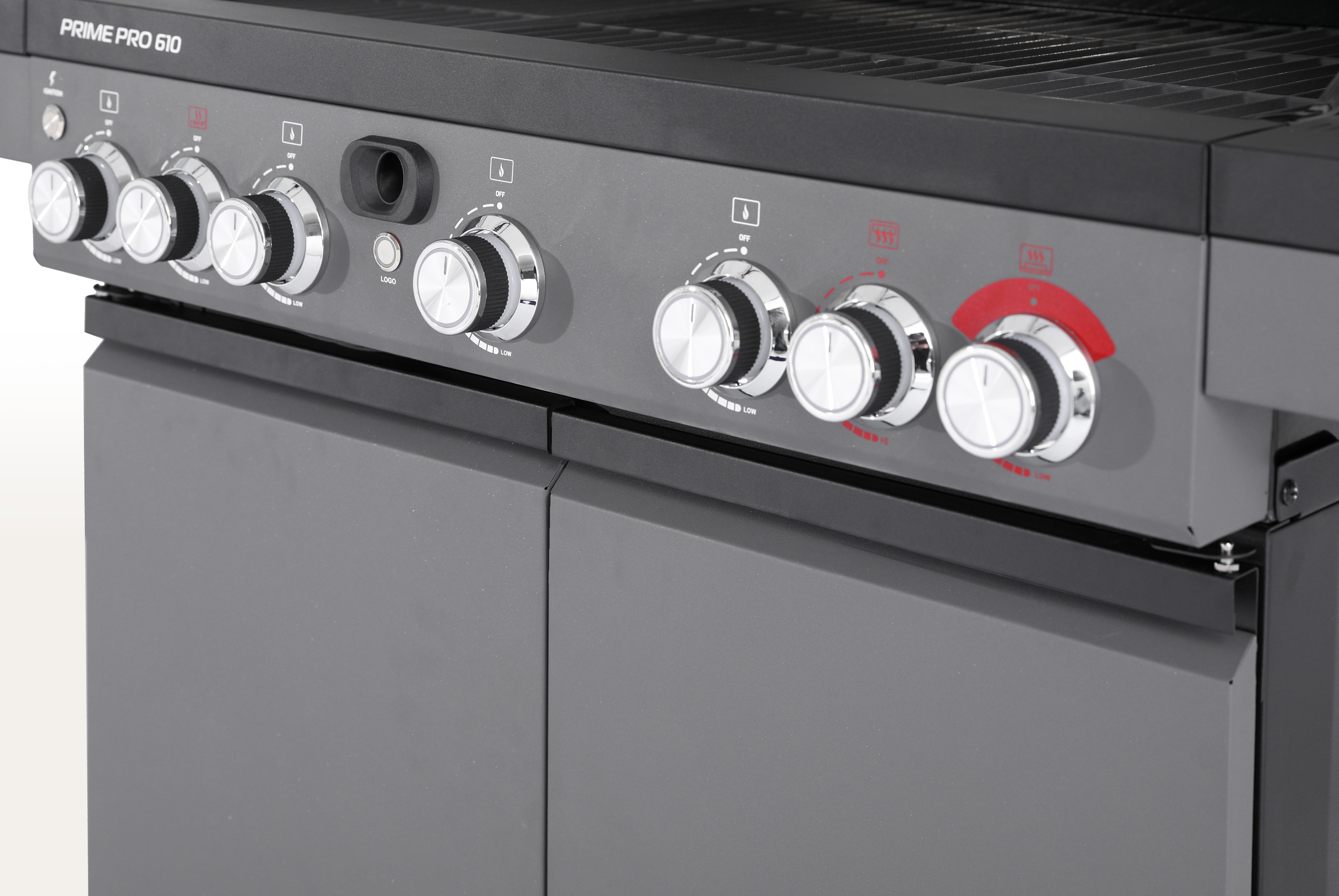 Одно из главных преимуществ модели PRIME PRO 610 – это равномерное распределение тепла, которое обеспечивают ряд основных 4-х трубчатых горелок и пятая инфракрасная горелка, расположенная с краю основной зоны приготовления. Инфракрасная горелка разогревается до 800°C и гарантирует идеальную экспресс-обжарку мяса.
