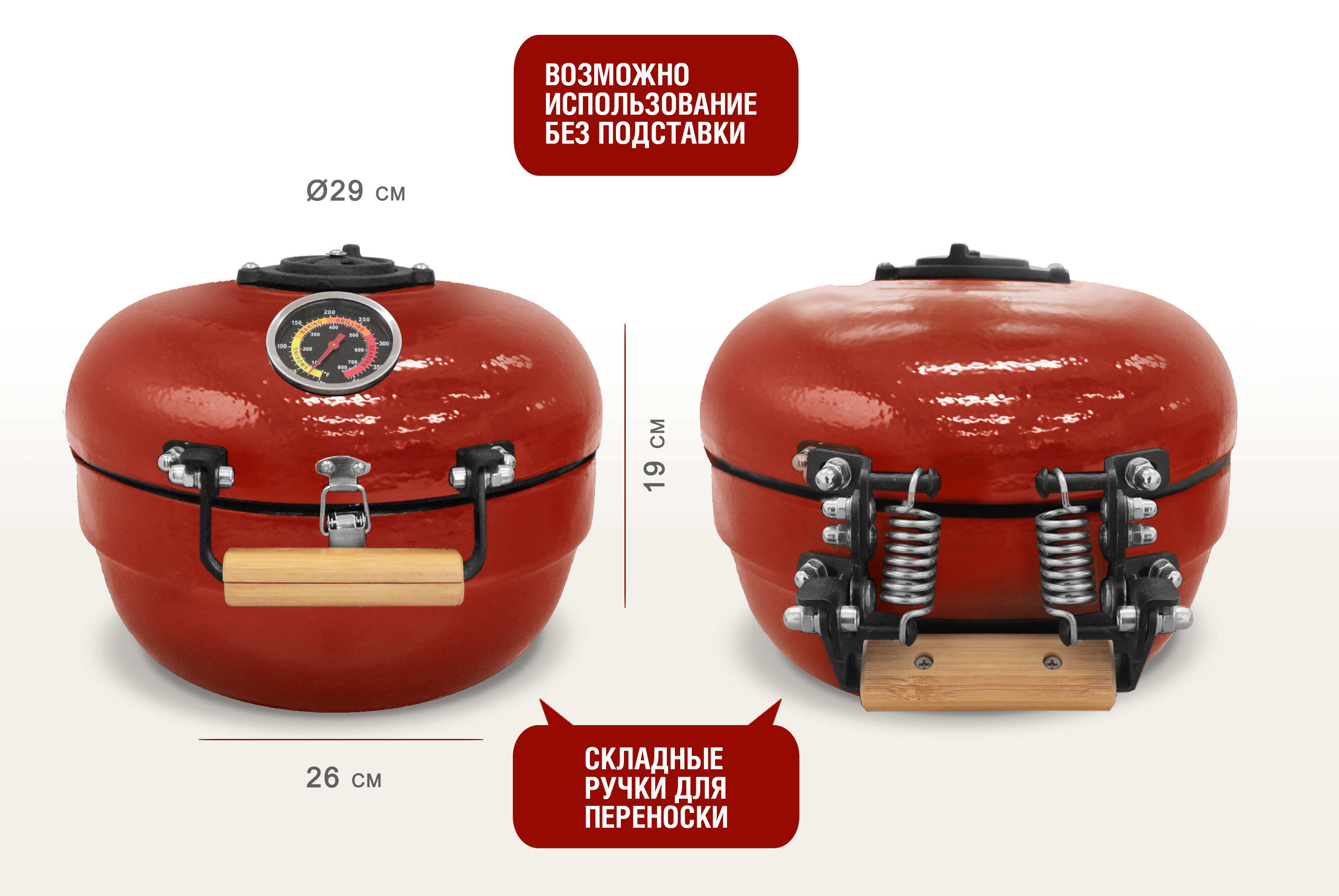 Портативный керамический гриль TRAVELLER 12 дюймов (красный) (30,5 см) |