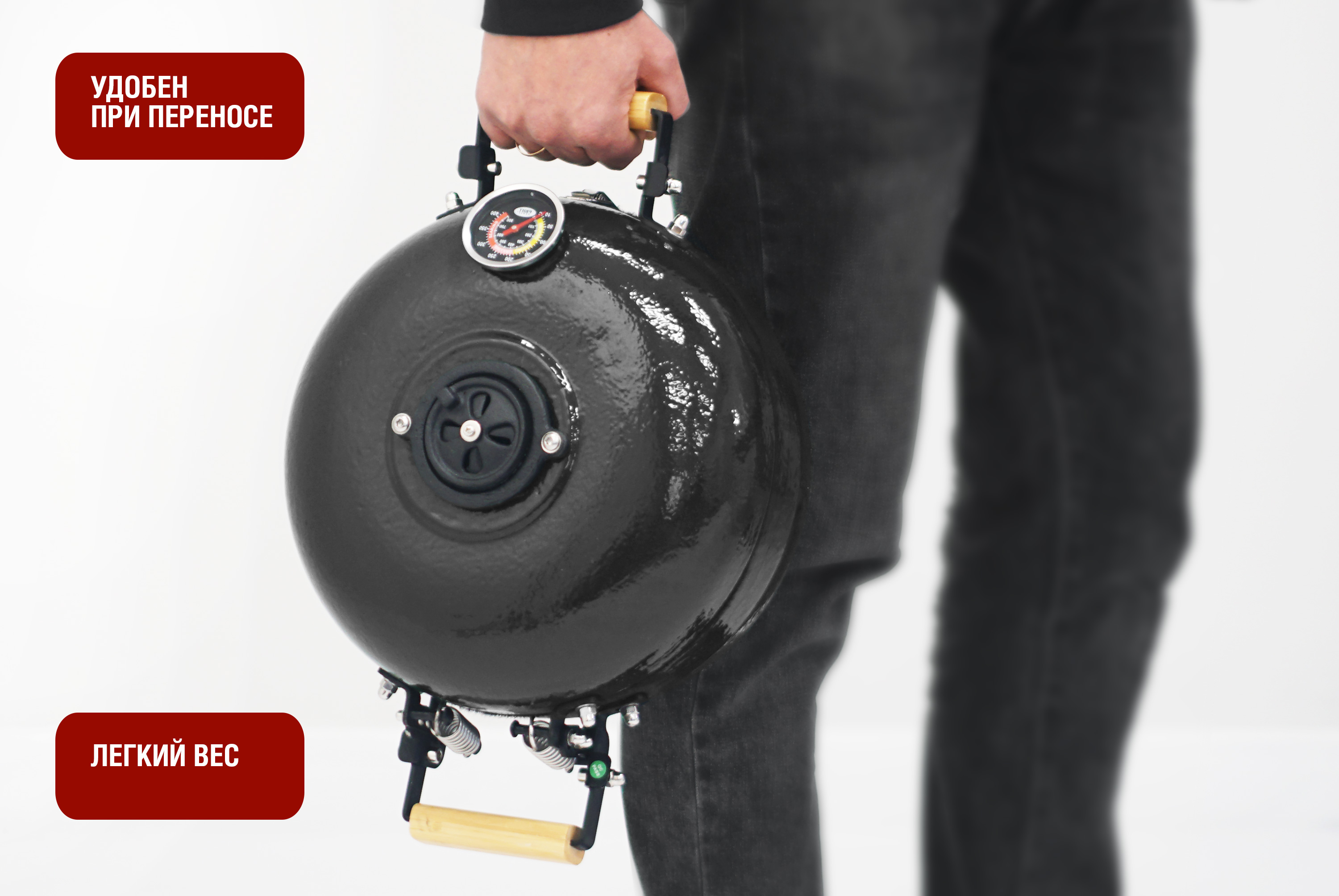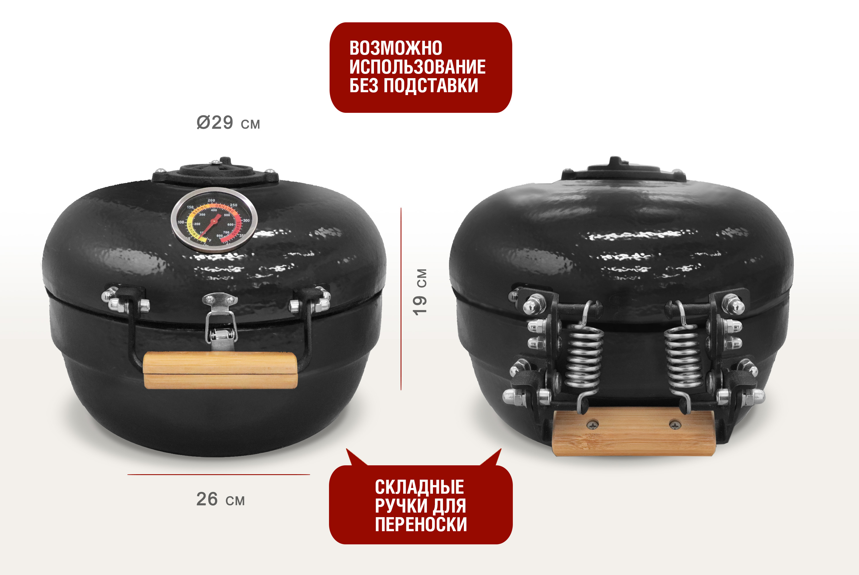 - Высокоточный термометр, установленный на крышке гриля, позволит контролировать температуру внутри гриля.