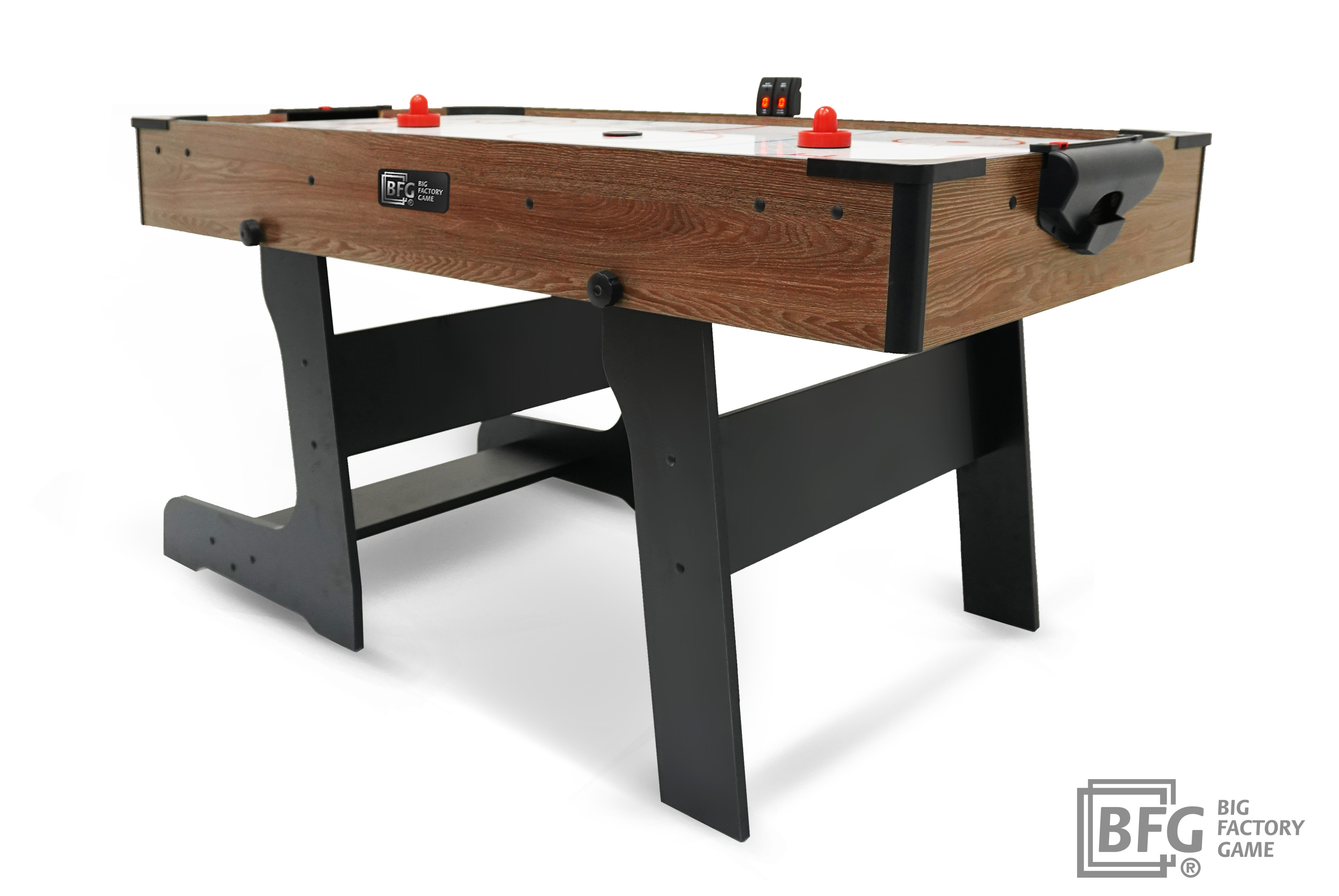 Каждый аэрохоккей стол оборудован удобным и информативным электронным счетчиком очков. Кроме того подсчет результатов матча может быть осуществлен с помощью механических счет, встроенных в ворота.
