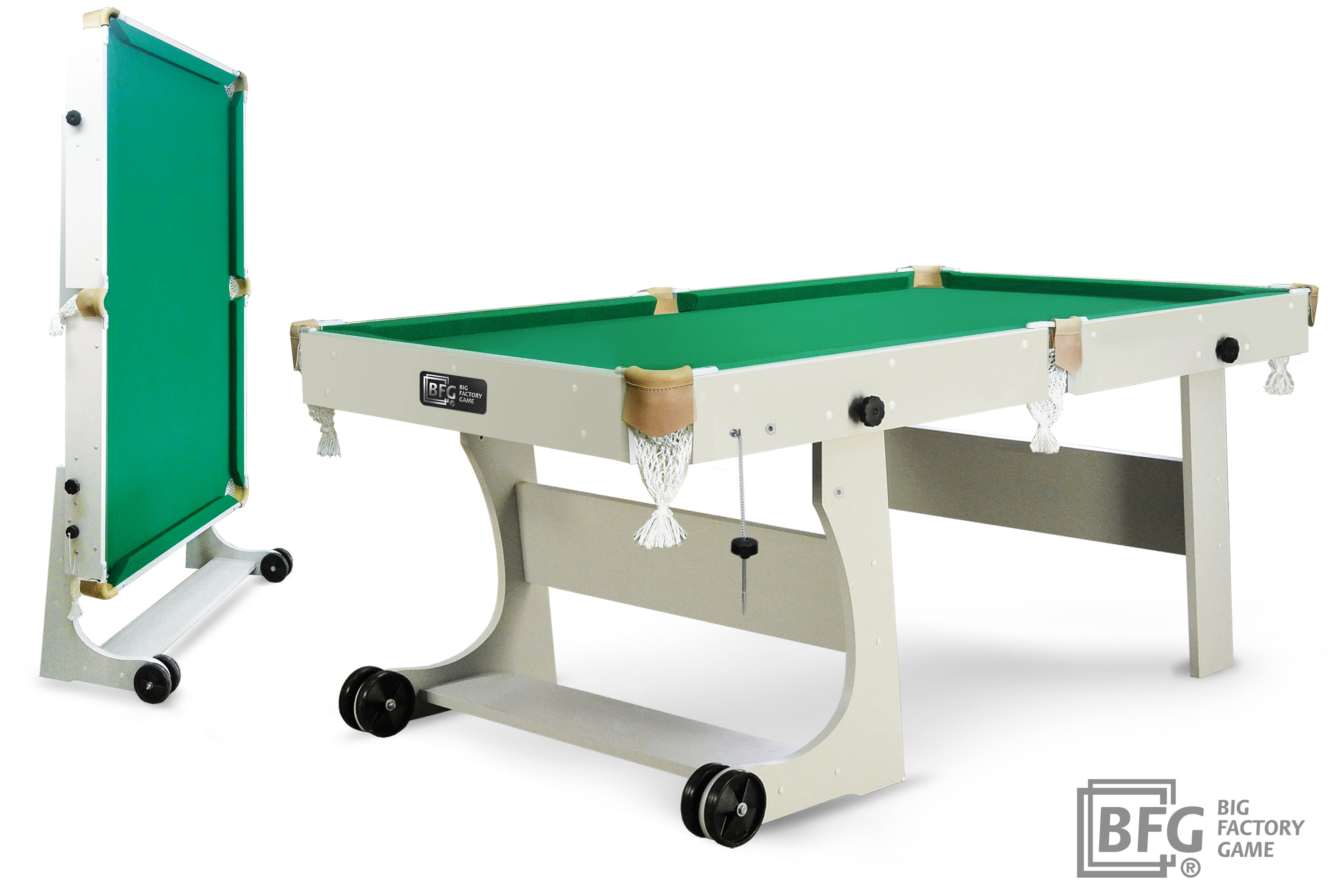Привлекательной особенностью модели является удобный механизм складывания, позволяющий без особых усилий быстро сложить / разложить бильярдный стол. В сложенном виде стол имеет габариты 50х99х206.3 см. Благодаря сдвоенным колесам стол удобно перемещать в отведенное место на время хранения. В небольшой квартире Compact Light не займет много пространства, его хранение оптимально для небольших помещений.