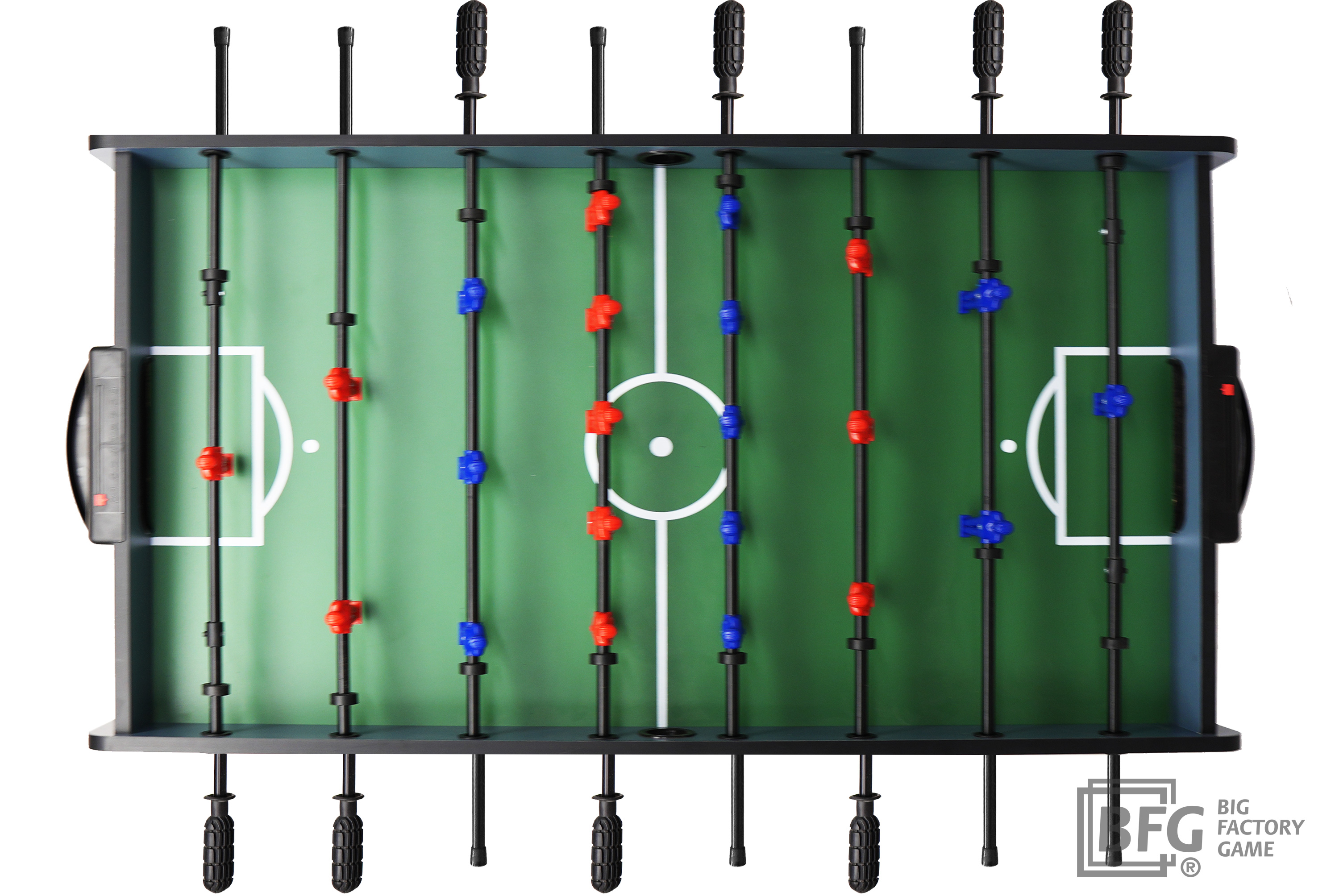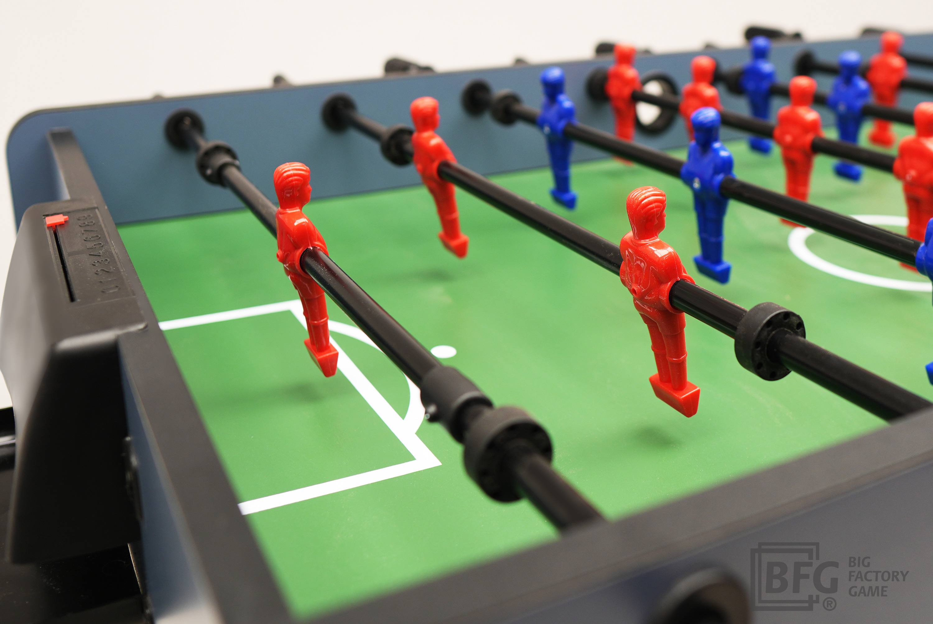 - Штанги управления с резиновыми рукоятками вращаются плавно и легко, обеспечивая полный контроль над игроками и точность передач и ударов.