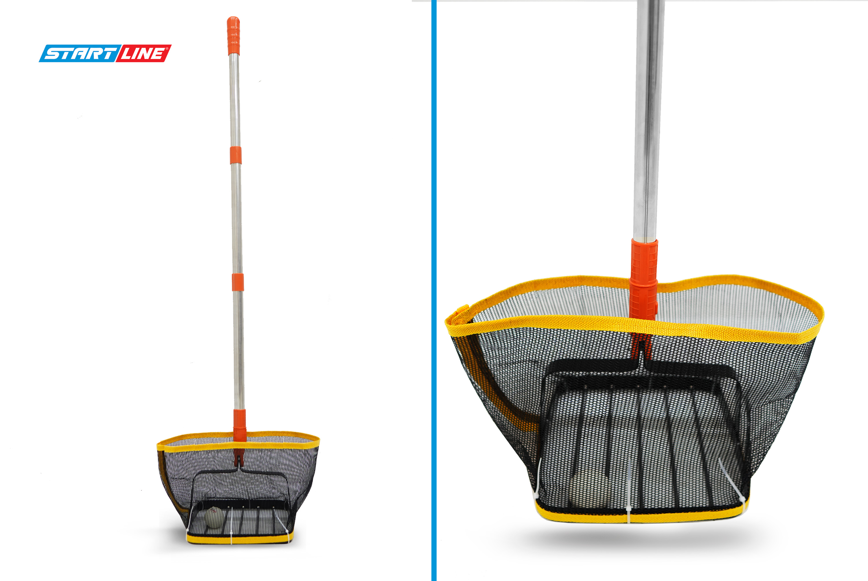 Длинная рукоятка, изготовленная из легкого и прочного материала, обеспечивает достаточную дальность действия, позволяя собирать мячи в вертикальном положении без нагрузки на спину и поясницу.
