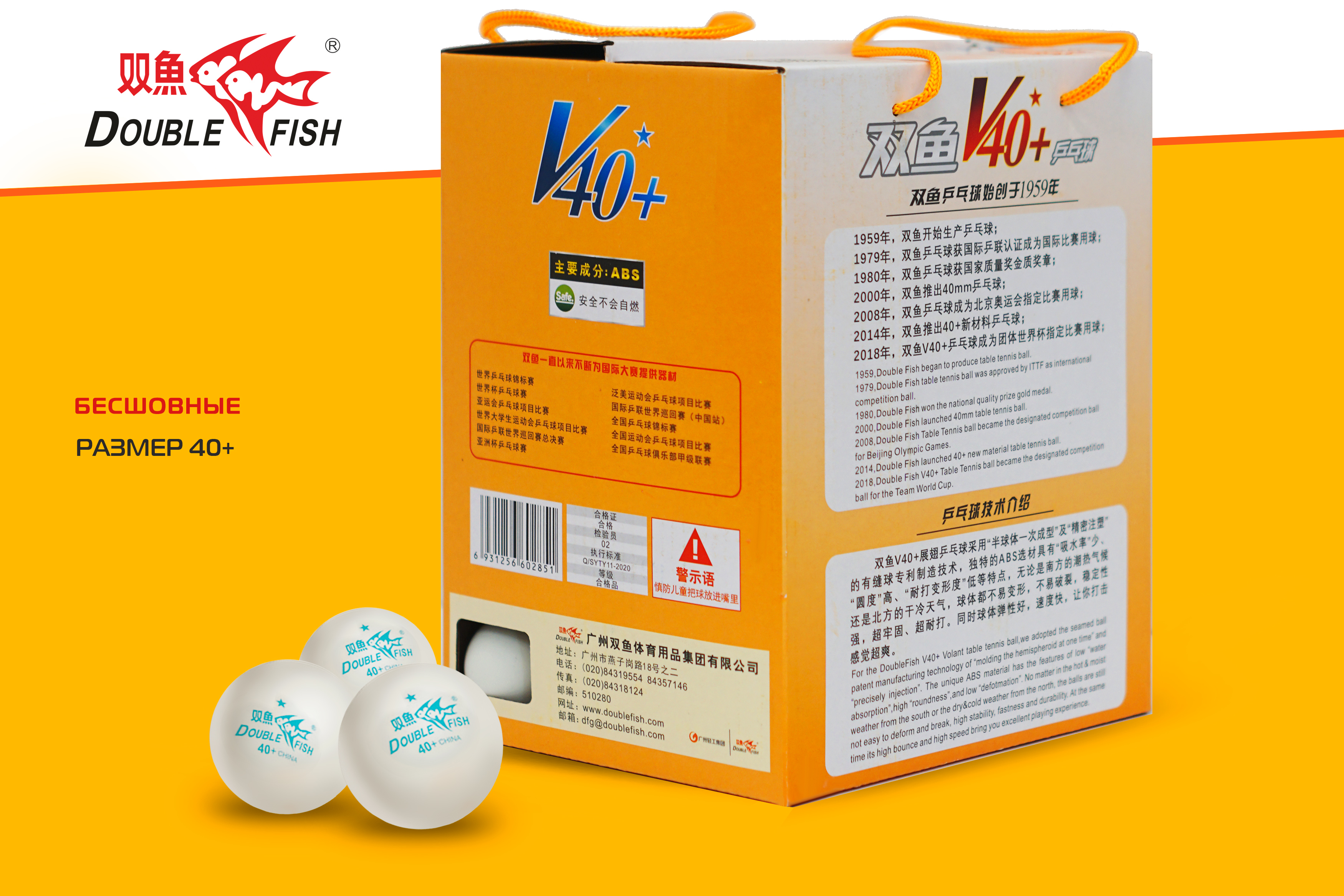Мячи нового поколения, пластиковые, размер 40 +. Мячи Double Fish являются официальными мячами множества национальных и международных чемпионатов, в том числе и Олимпийских игр.