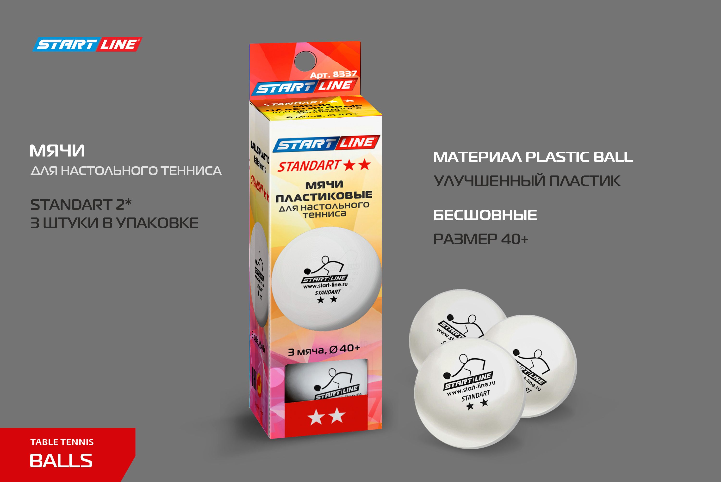Мячи для настольного тенниса STANDART соответствуют высоким современным требованиям, имеют обновленный дизайн и улучшенные игровые характеристики. Эти мячи идеально подходят для тех, кто тренируется и для проведения соревнований. Материал Plastic Ball - улучшенный пластик, на сегодняшний день его причисляют к самому современному материалу в индустрии настольного тенниса.