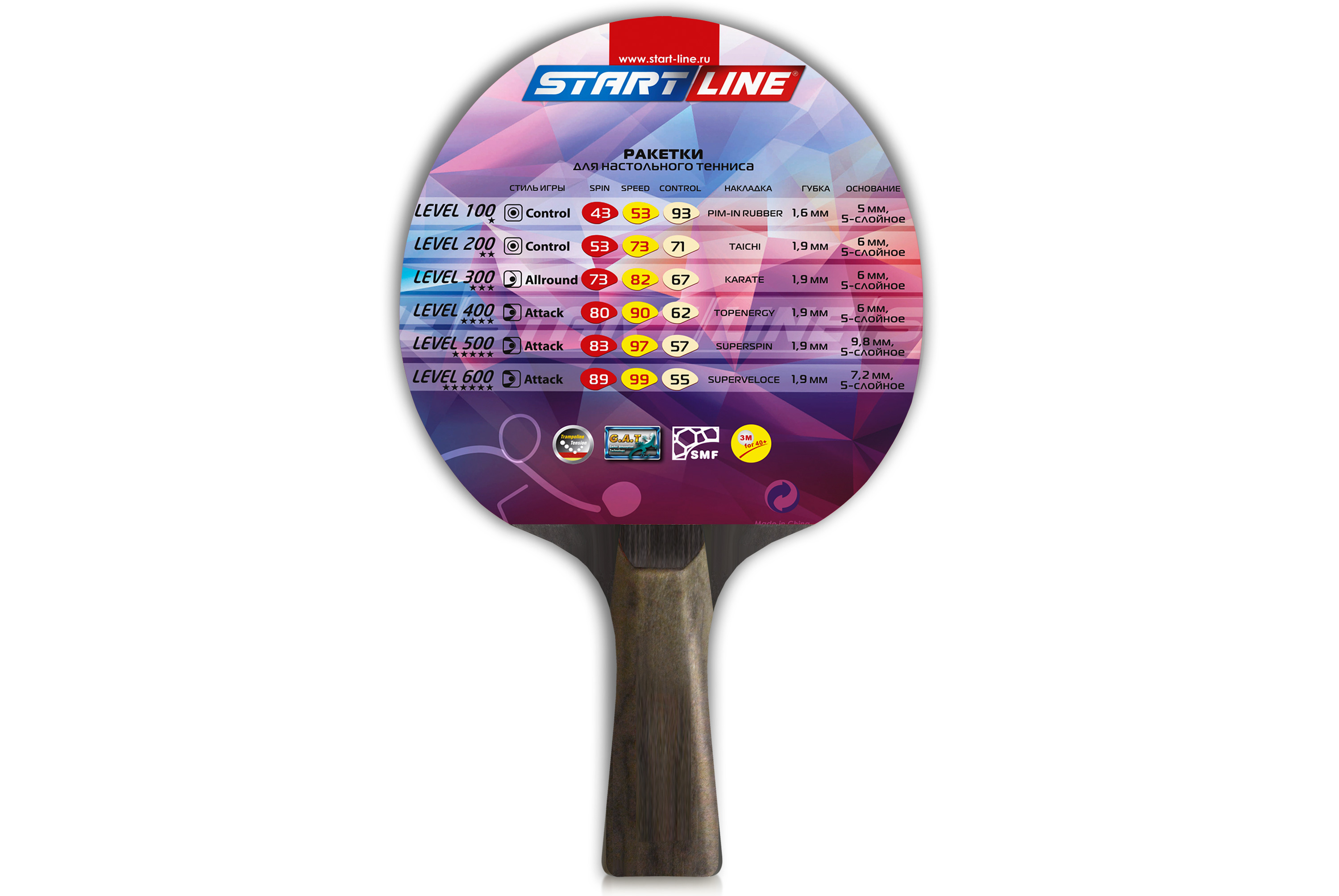 Ракетка для настольного тенниса Level 400 соответствует высокому современному стандарту качества, имеет обновленный дизайн, а также улучшенные технологические и игровые характеристики.