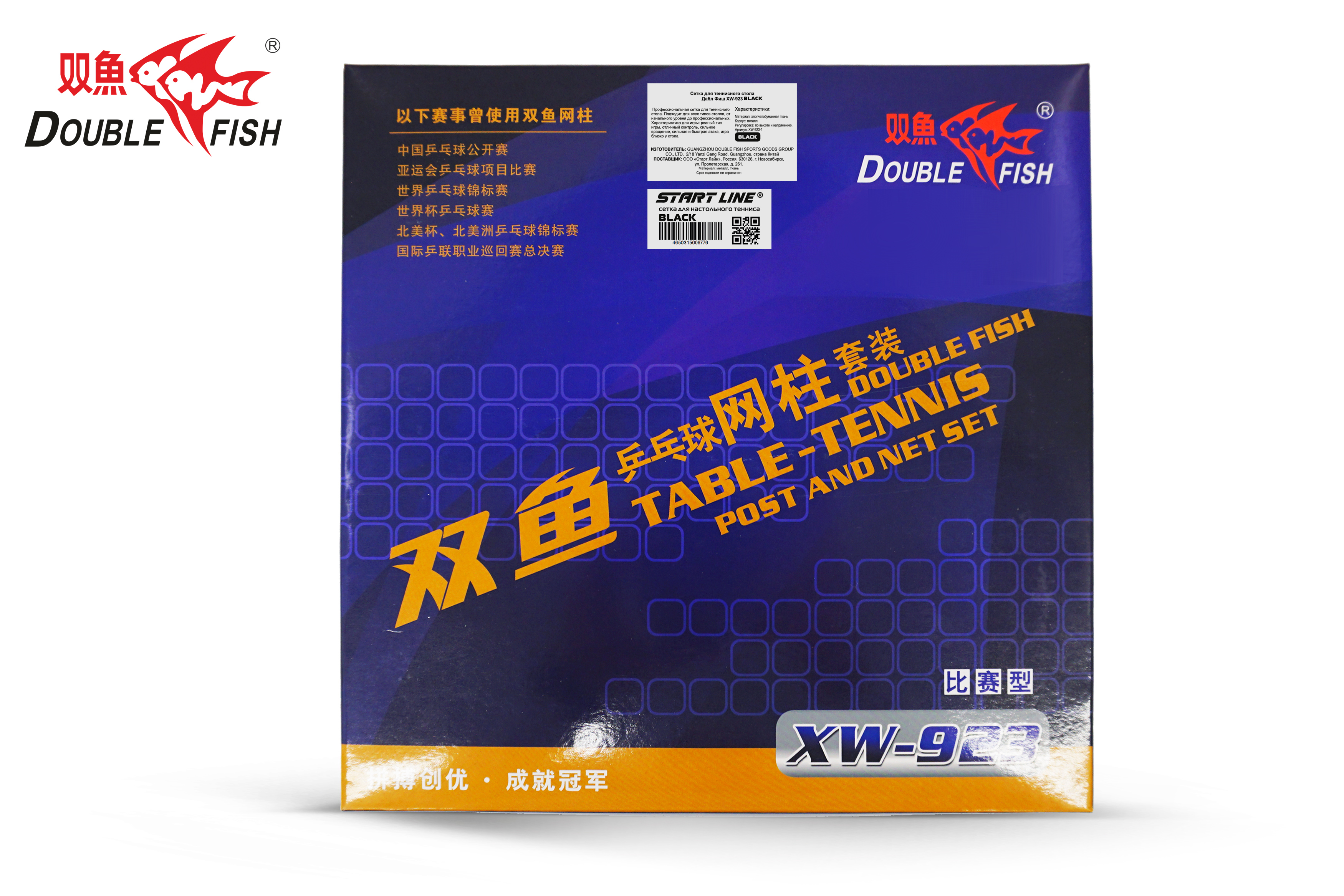 Double Fish XW-923 black оснащена мощным винтовым механизмом, благодаря которому металлическое крепление сетки надежно фиксируется на поверхности стола. Модель обладает возможностью регулировки натяжения нити и высоты полотна, позволяя настроить ее в соответствии с предпочтениями игроков и требованиями игры.