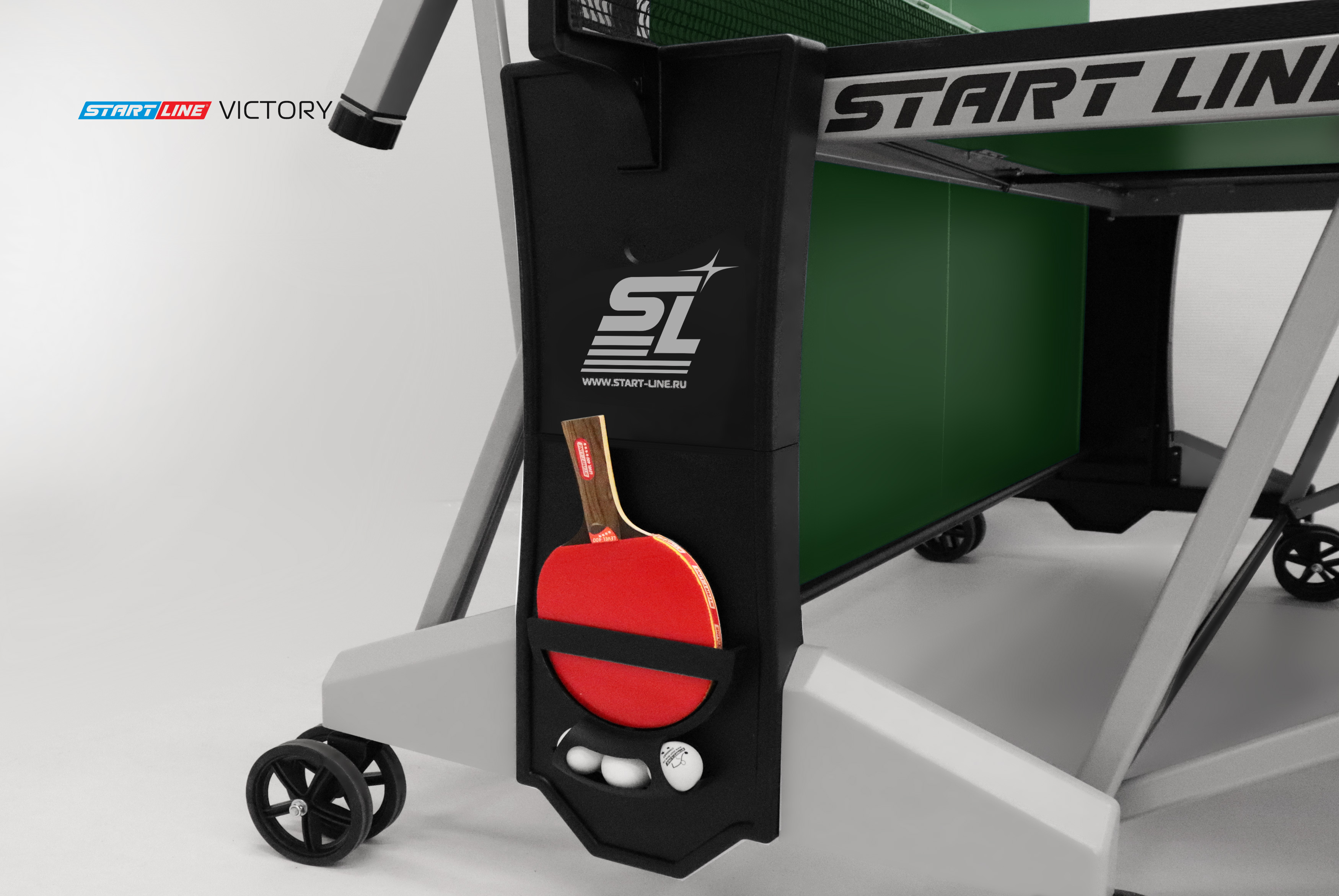Модель Victory укомплектована удобным держателем для ракеток и мячей с покрытием Soft-touch и встроенной сеткой с натяжным механизмом, не требующей демонтажа при складывании. Начать игру можно в любое время, ведь все необходимое оборудование всегда под рукой.