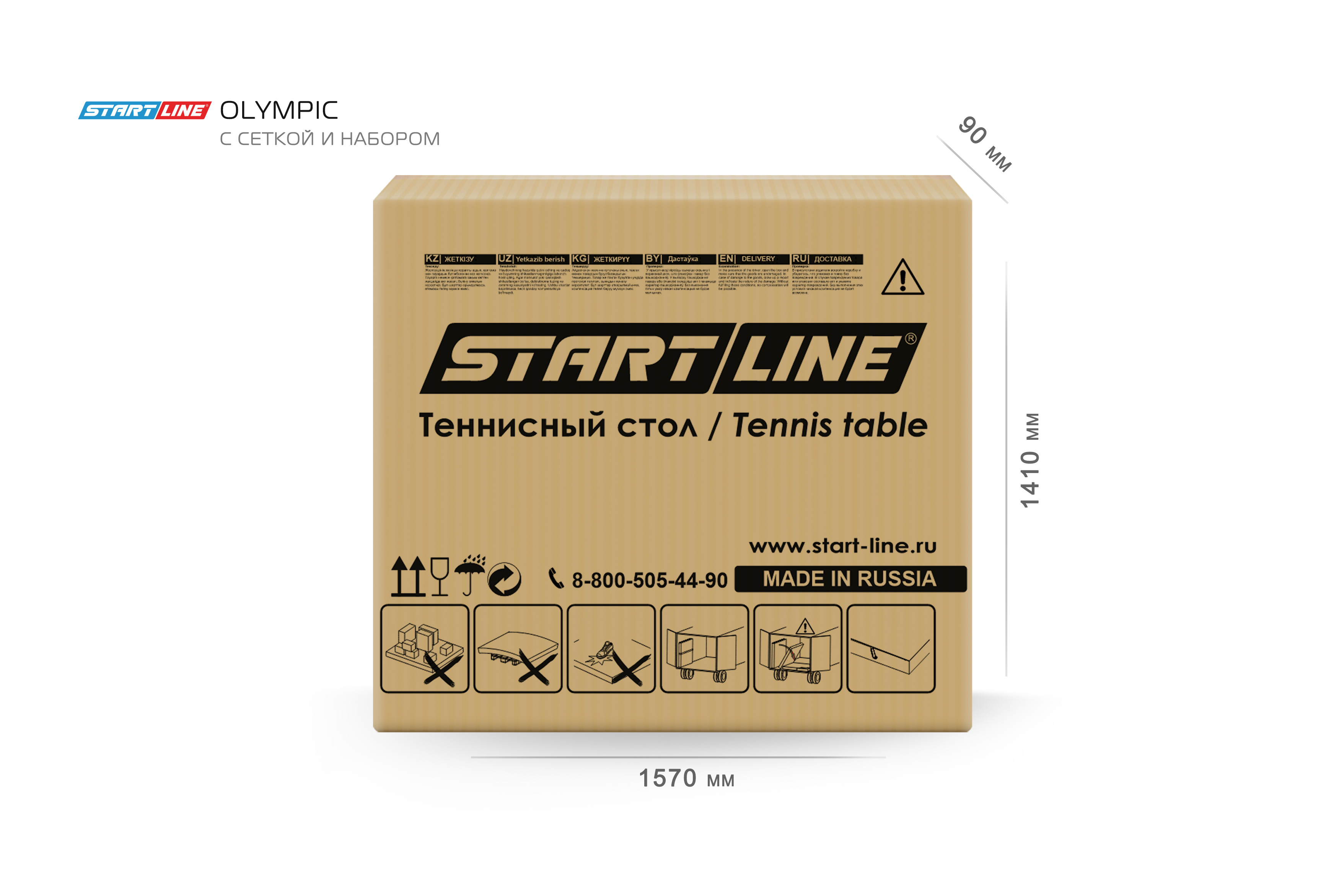 Теннисный стол Olympic имеет размеры 274 х 152,5 х 76 см в разложенном виде, что соответствует международному стандарту ITTF.
