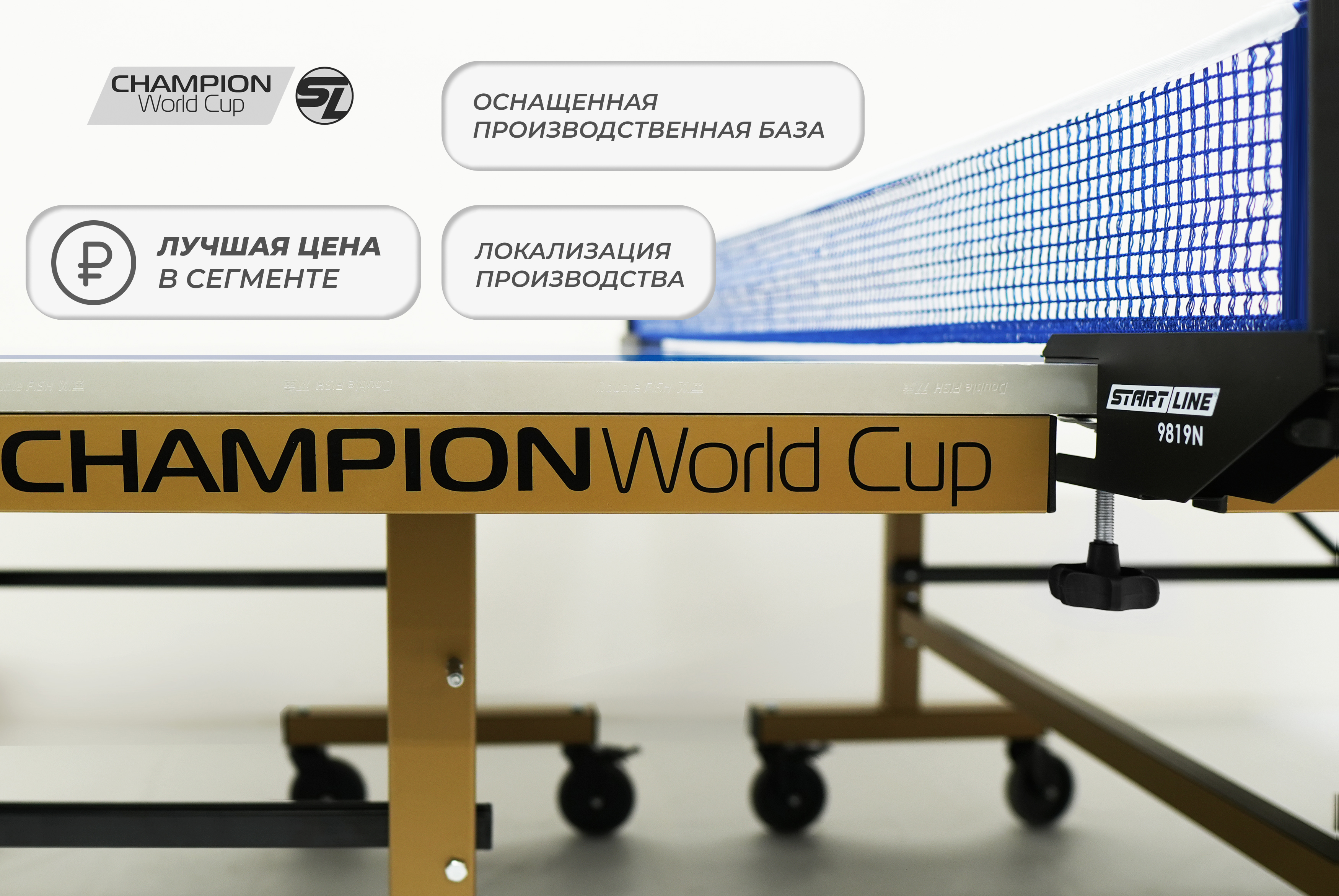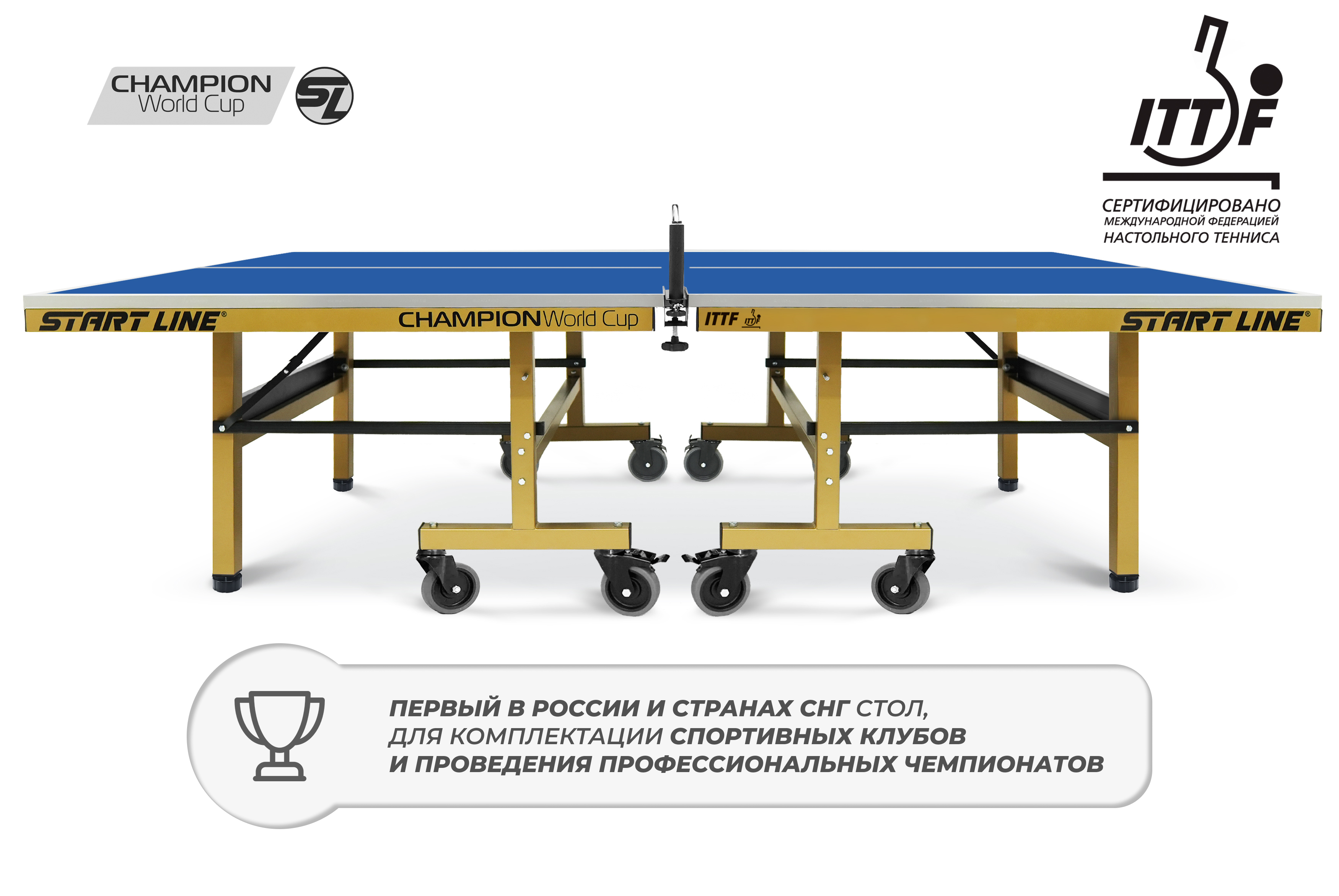 Champion World Cup — это первый в России и странах СНГ стол, спроектированный для комплектации спортивных клубов и проведения профессиональных чемпионатов. Рекомендации топ-спортсменов, учтенные при разработке, гарантируют эргономику модели и игровые характеристики, соответствующие самым строгим мировым стандартам.
