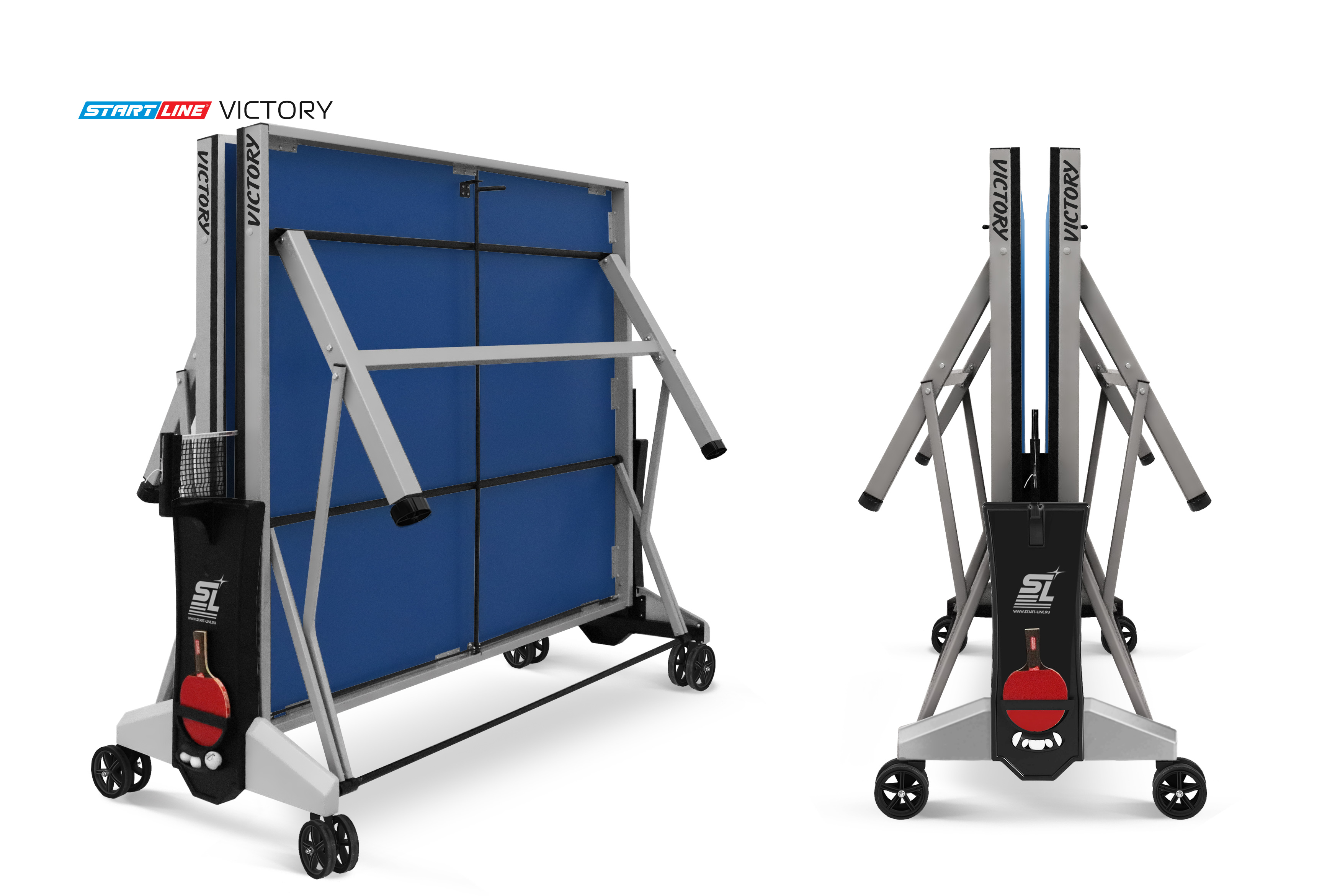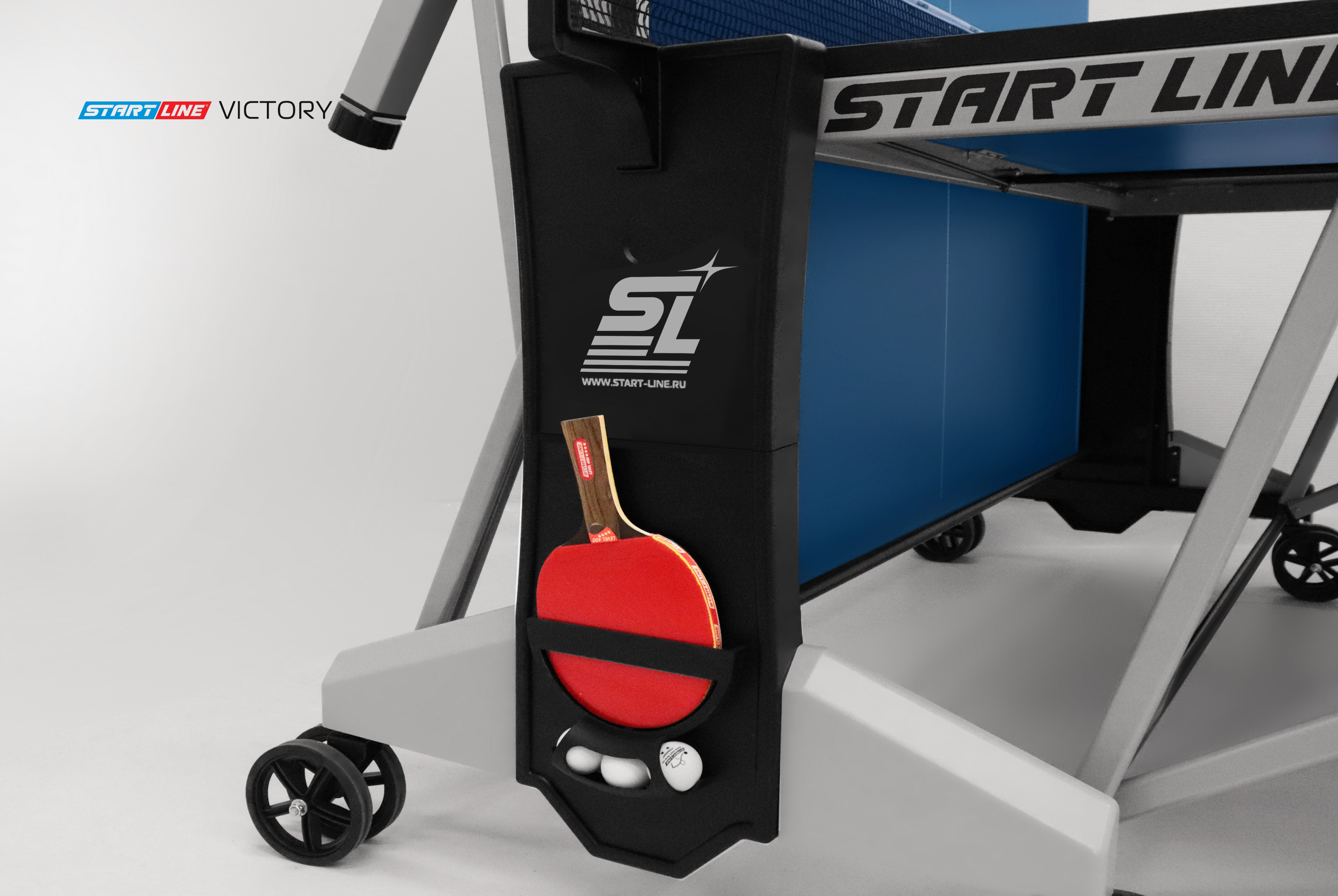 Модель Victory укомплектована удобным держателем для ракеток и мячей с покрытием Soft-touch и встроенной сеткой с натяжным механизмом, не требующей демонтажа при складывании. Начать игру можно в любое время, ведь все необходимое оборудование всегда под рукой.