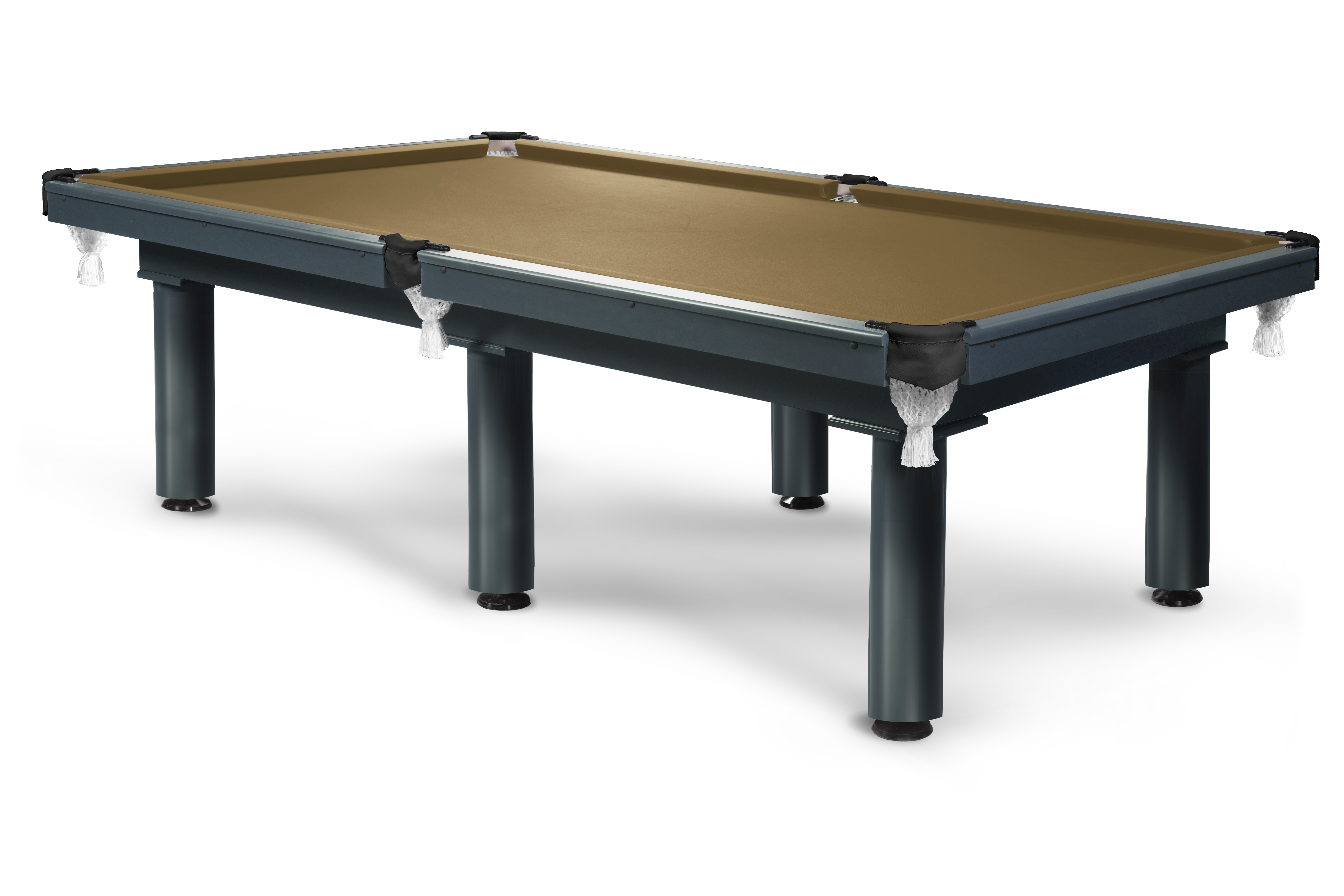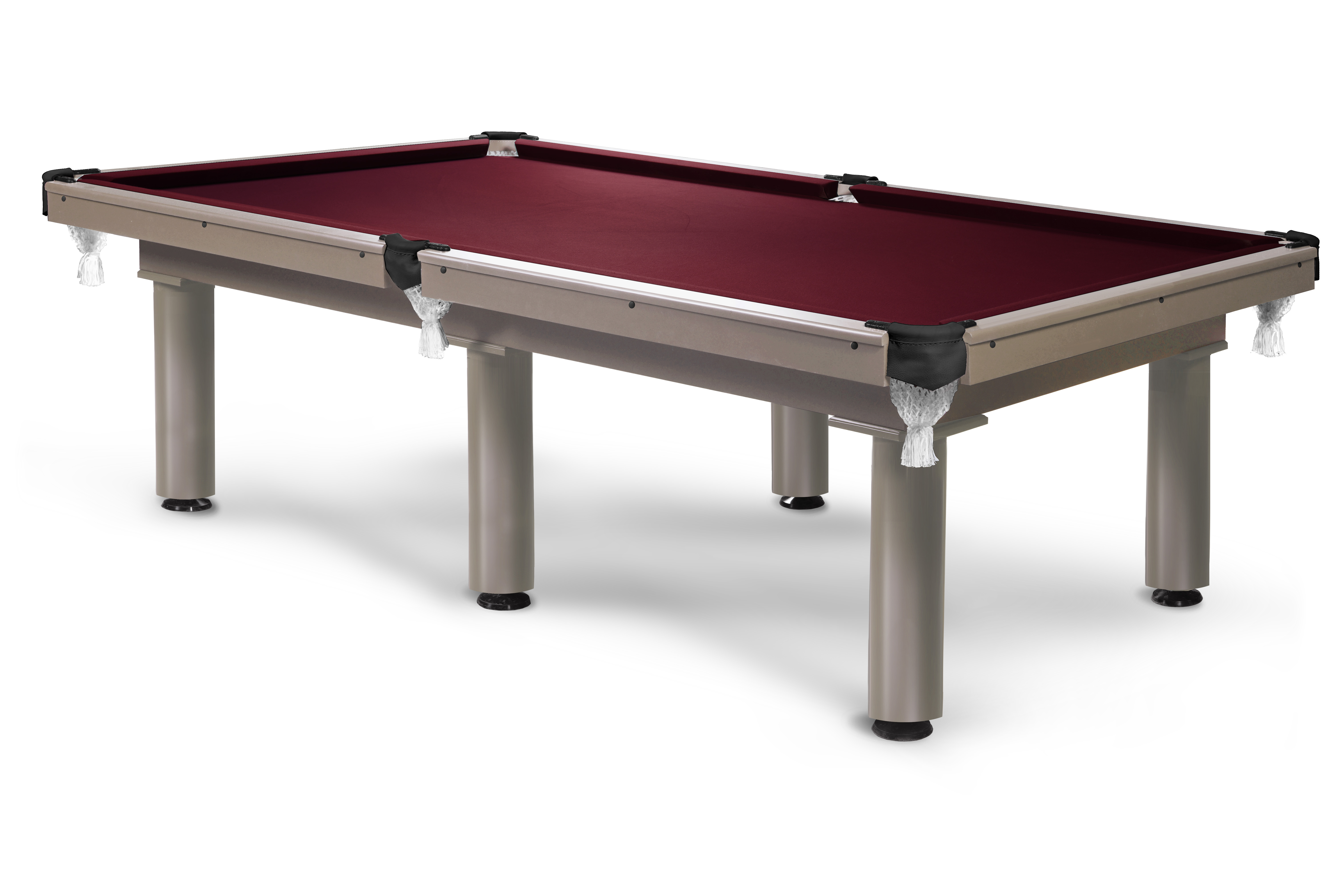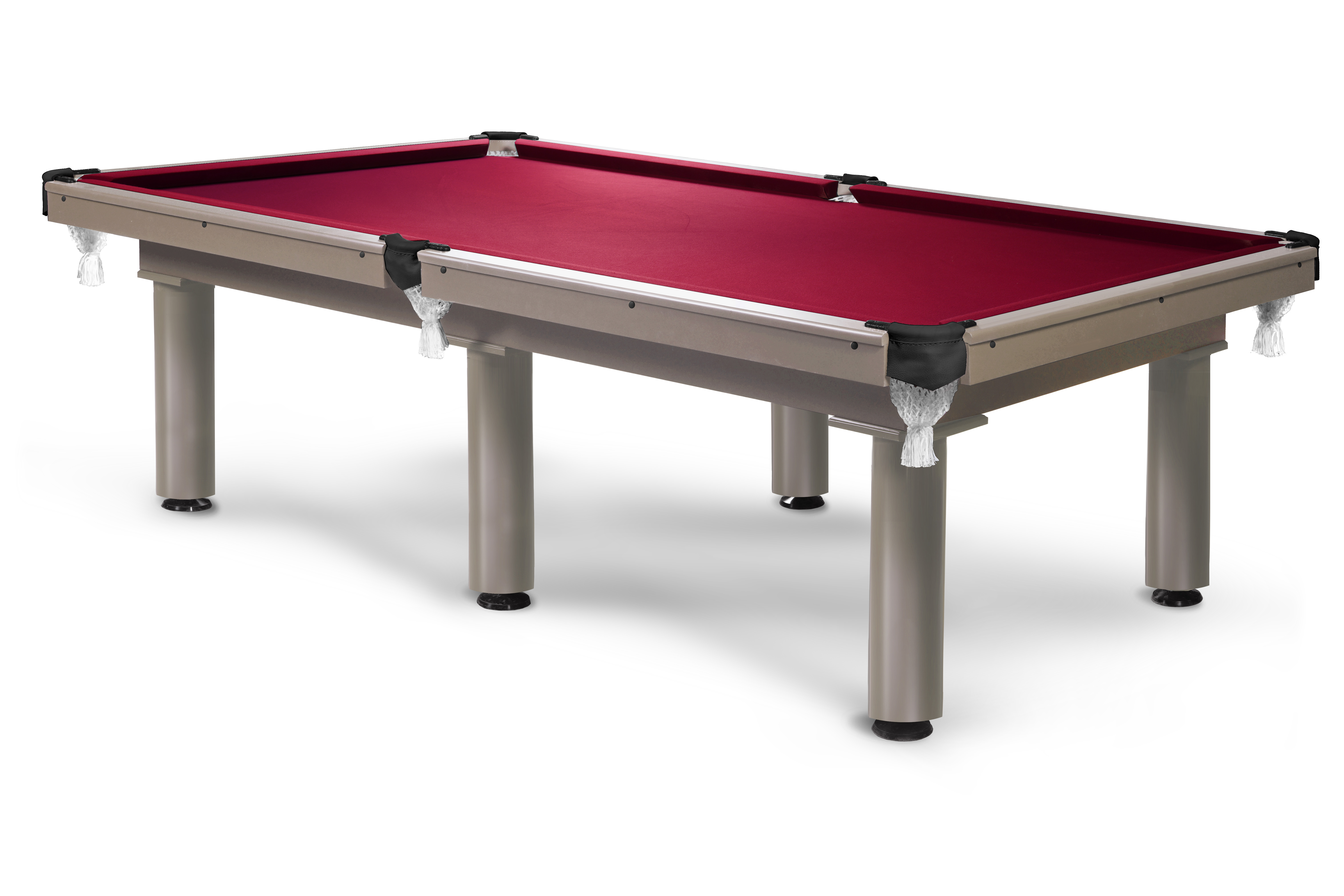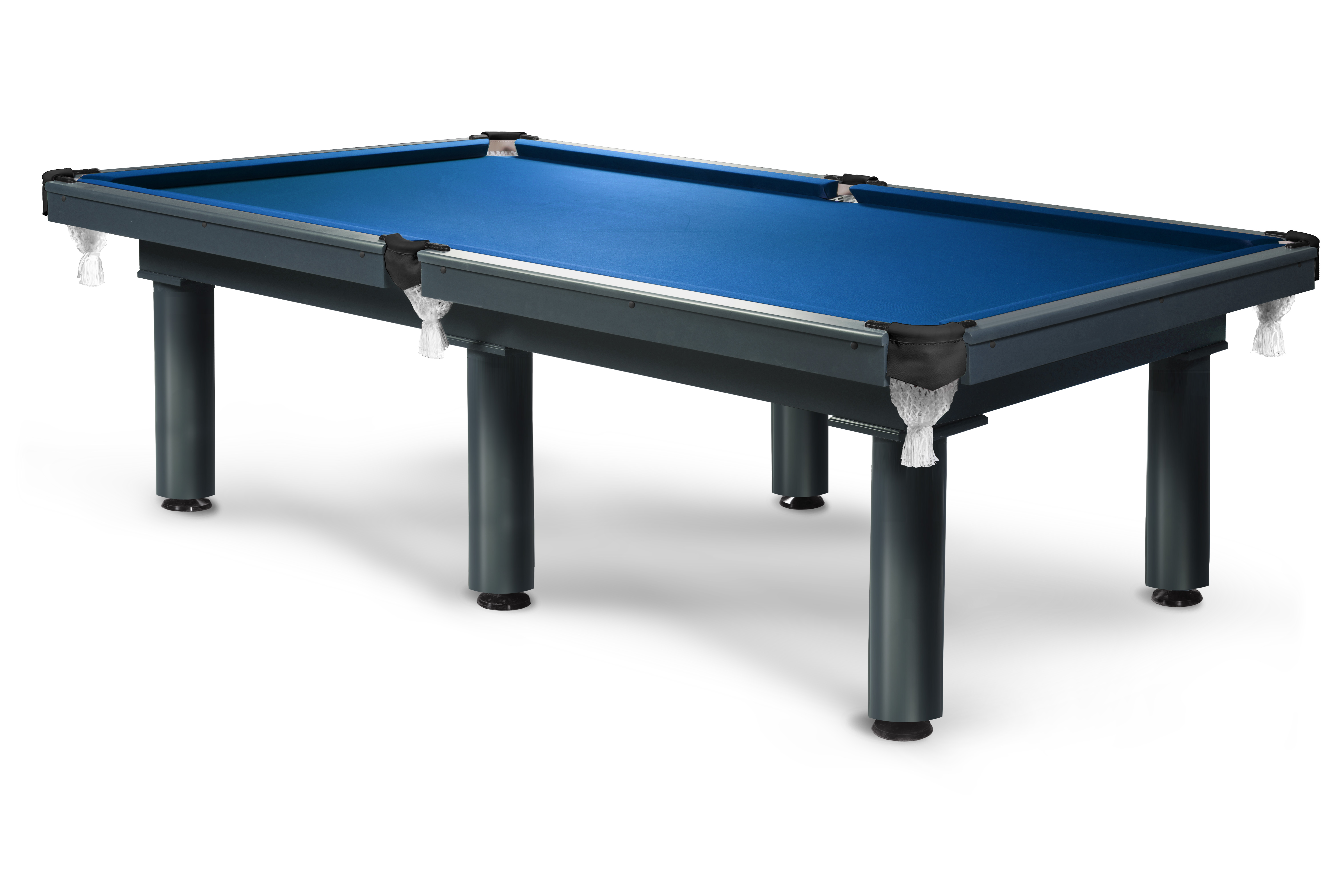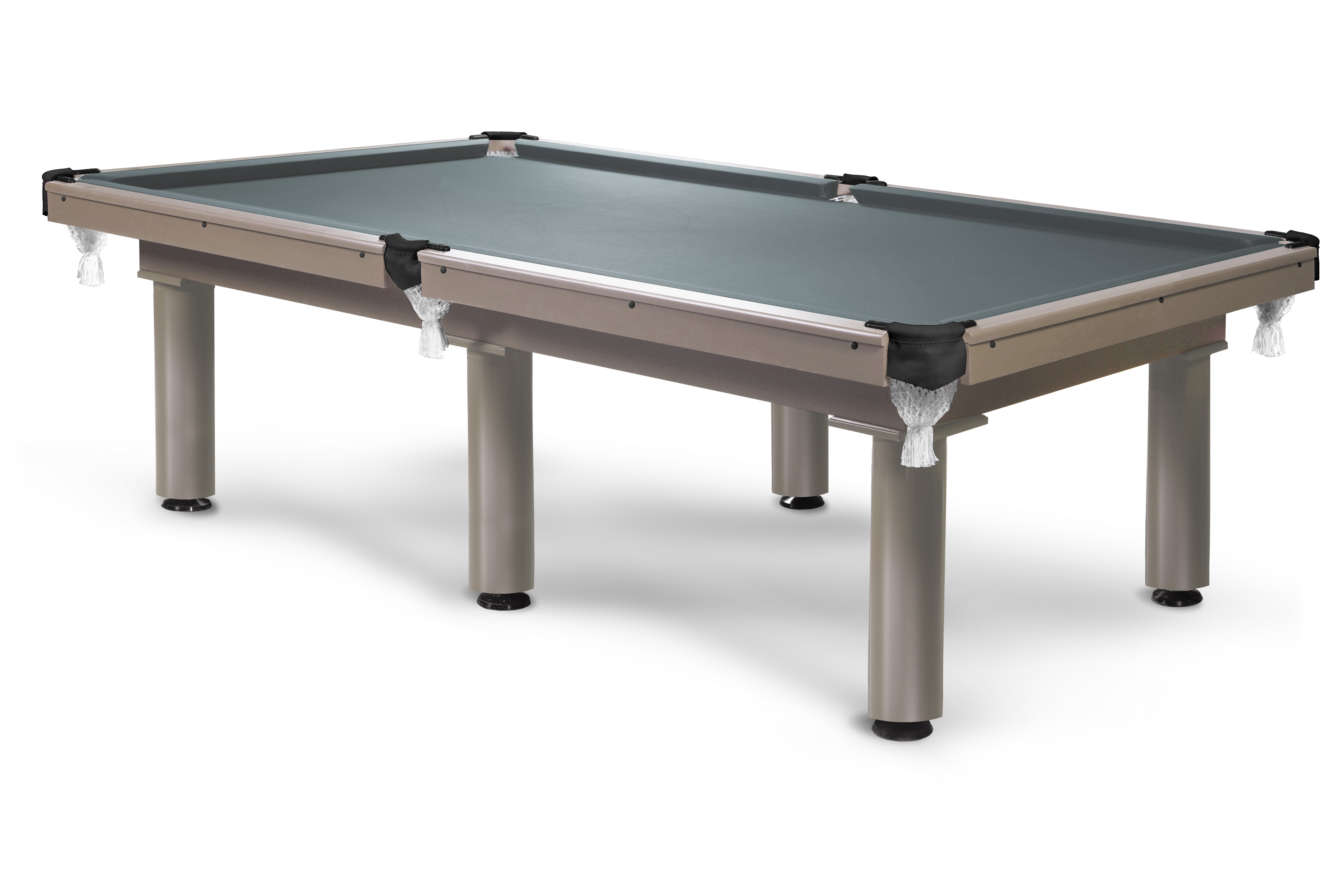Стол комплектуется резиновым профилем Start Standard для предсказуемого отскока, износостойким сукном Manchester и кожаной пелериной. Силуминовые скобы и хлопковые сетки луз дополняют комплектацию.